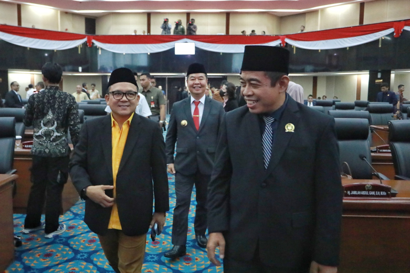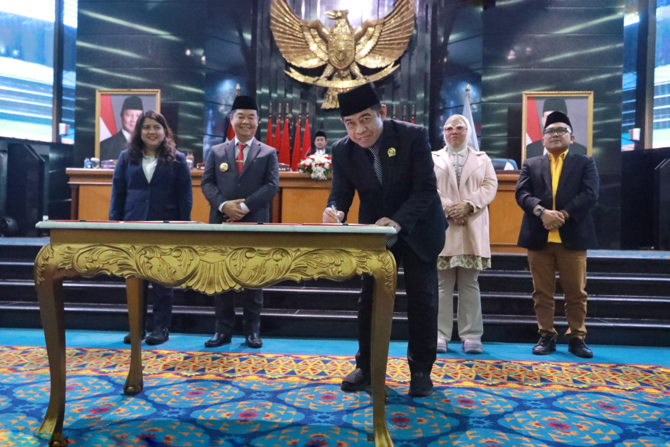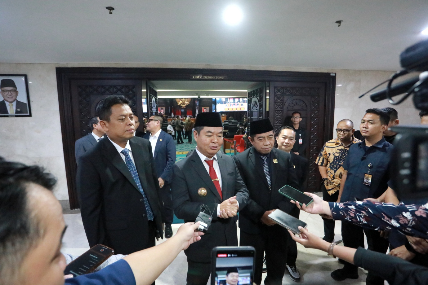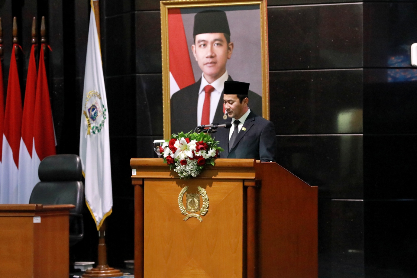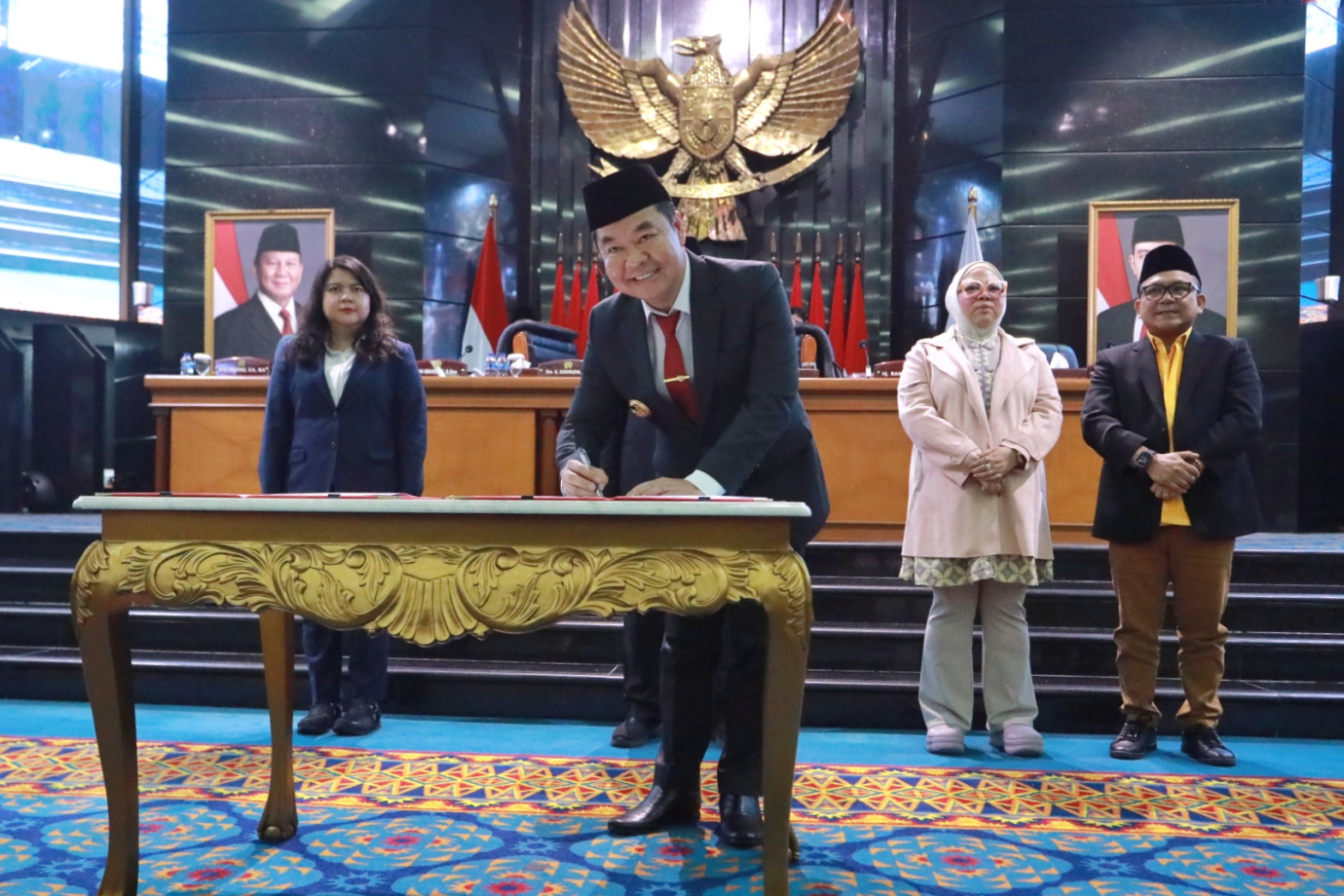 Penjabat (Pj) Gubernur DKI Jakarta, Teguh Setyabudi menghadiri Rapat Paripurna DPRD Provinsi DKI Jakarta di Ruang Rapat Paripurna DPRD DKI Jakarta, Jumat (1/11). Rapat ini beragendakan penandatanganan MoU Rancangan Kebijakan Umum APBD serta Rancangan Prioritas dan Plafon Anggaran Sementara APBD Provinsi DKI Tahun 2025 dan penetapan perubahan rencana kerja DPRD Provinsi DKI Jakarta Tahun 2025.