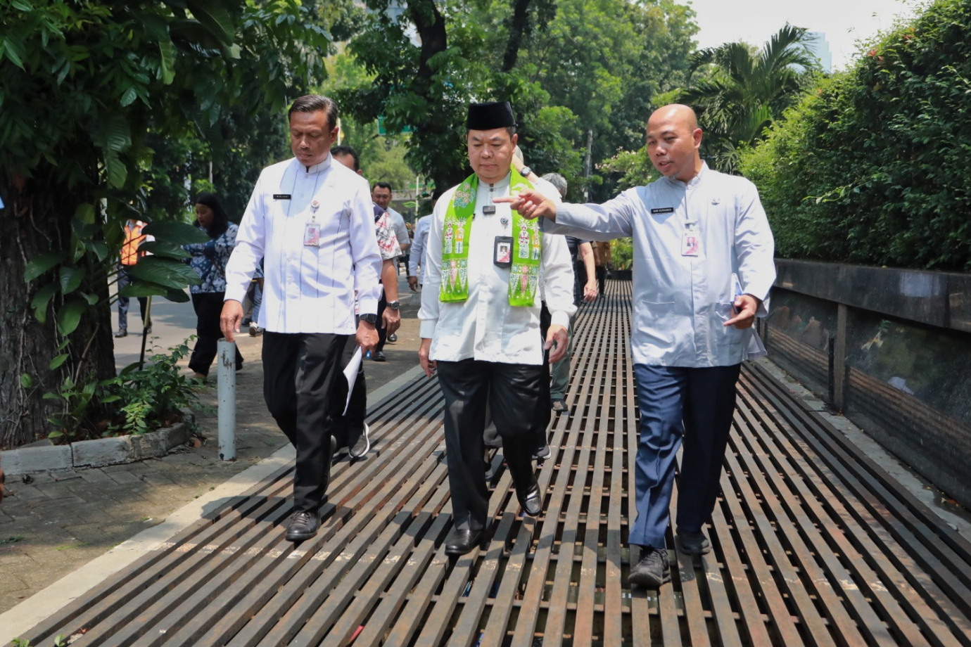 Penjabat (Pj) Gubernur DKI Jakarta, Teguh Setyabudi bersama Walikota Jakarta Selatan, Munjirin, Plt. Kepala Dinas Sumber Daya Air (SDA) Ika Agustin Ningrum dan Kepala Biro Pembangunan dan Lingkungan Hidup Setda, Iwan Kurniawan meninjau saluran air di sepanjang jalan Adityawarman - Tirtayasa, Petogogan, Jakarta Selatan, Jumat (8/11). Dalam tinjauannya Pj Gubernur Teguh melihat langsung progres perbaikan dan pelebaran saluran air sebagai upaya mengatasi genangan di wilayah Jakarta Selatan saat hujan tiba.