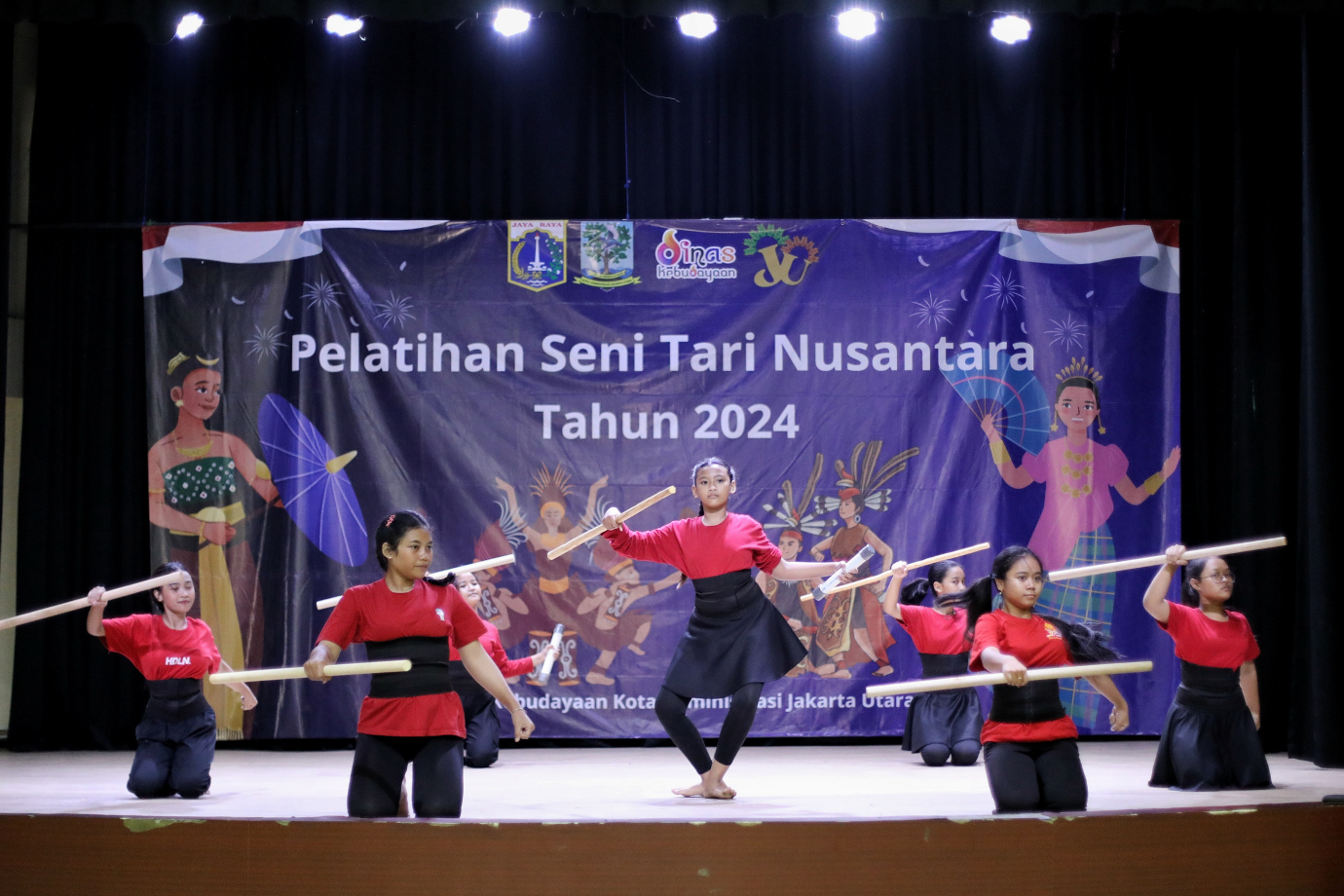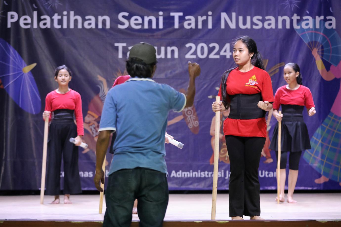 Suku Dinas Kebudayaan Jakarta Utara menggelar pelatihan tari tradisional di Pusat Pelatihan Seni Budaya (PPSB) Aki Tirem, Jalan Yos Sudarso, Keluahan Kebon Bawang, Tanjung Priok, Jumat (8/11). Kegiatan pelatihan dua jenis tari yang terdiri dari Tari Nusantara dan Tari Betawi ini diikuti 70 peserta.