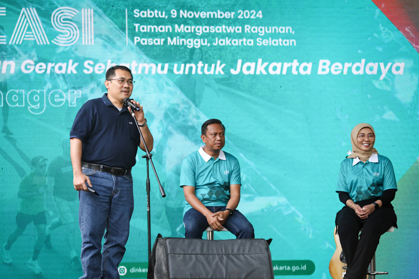 Pemerintah Provinsi (Pemprov) DKI Jakarta melalui Dinas Kesehatan menggelar acara rangkaian peringatan Hari Kesehatan Nasional ke-60 di Taman Margasatwa Ragunan, Jakarta Selatan, Sabtu (9/11). Acara gerak jalan yang mengangkat tema Gerak Bersama, Jakarta Berdaya tersebut diikuti oleh 24 tim gerak jalan dari sejumlah RSUD dan Puskesmas yang ada di Jakarta.