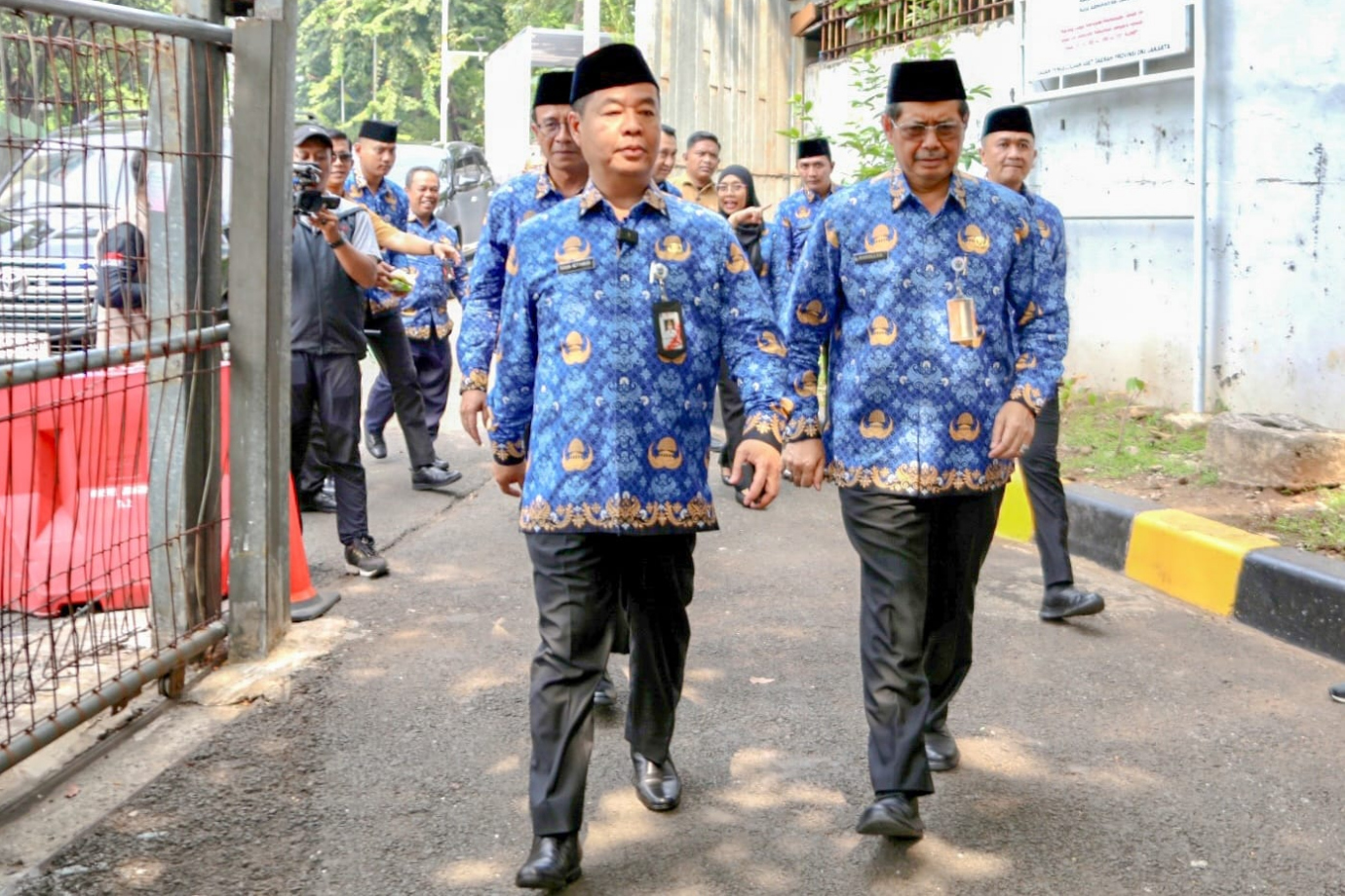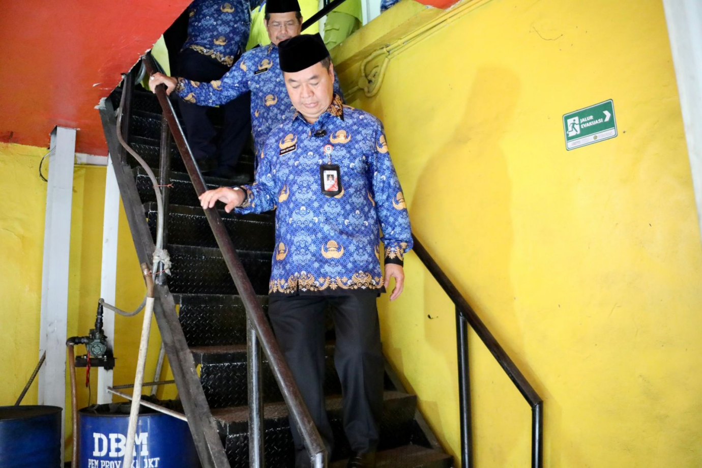 Penjabat (Pj) Gubernur DKI Jakarta, Teguh Setyabudi didampingi oleh Sekretaris Daerah (Sekda) DKI Jakarta, Marullah Matali, Asisten Pembangunan Sekda DKI Jakarta, Afan Adriansyah Idris dan Kepala Dinas Bina Marga DKI, Heru Suwondo meninjau rumah pompa Dukuh Atas, Jakarta Pusat, Minggu (10/11). Kunjungan ini merupakan tindak lanjut aksi pemotongan kabel di underpass Senen dan beberapa lokasi lain yang terjadi diwaktu yang hampir bersamaan.