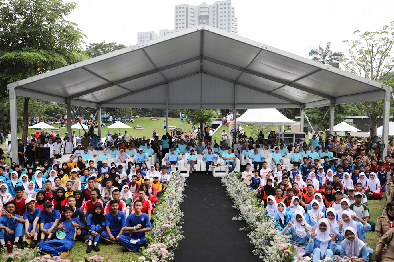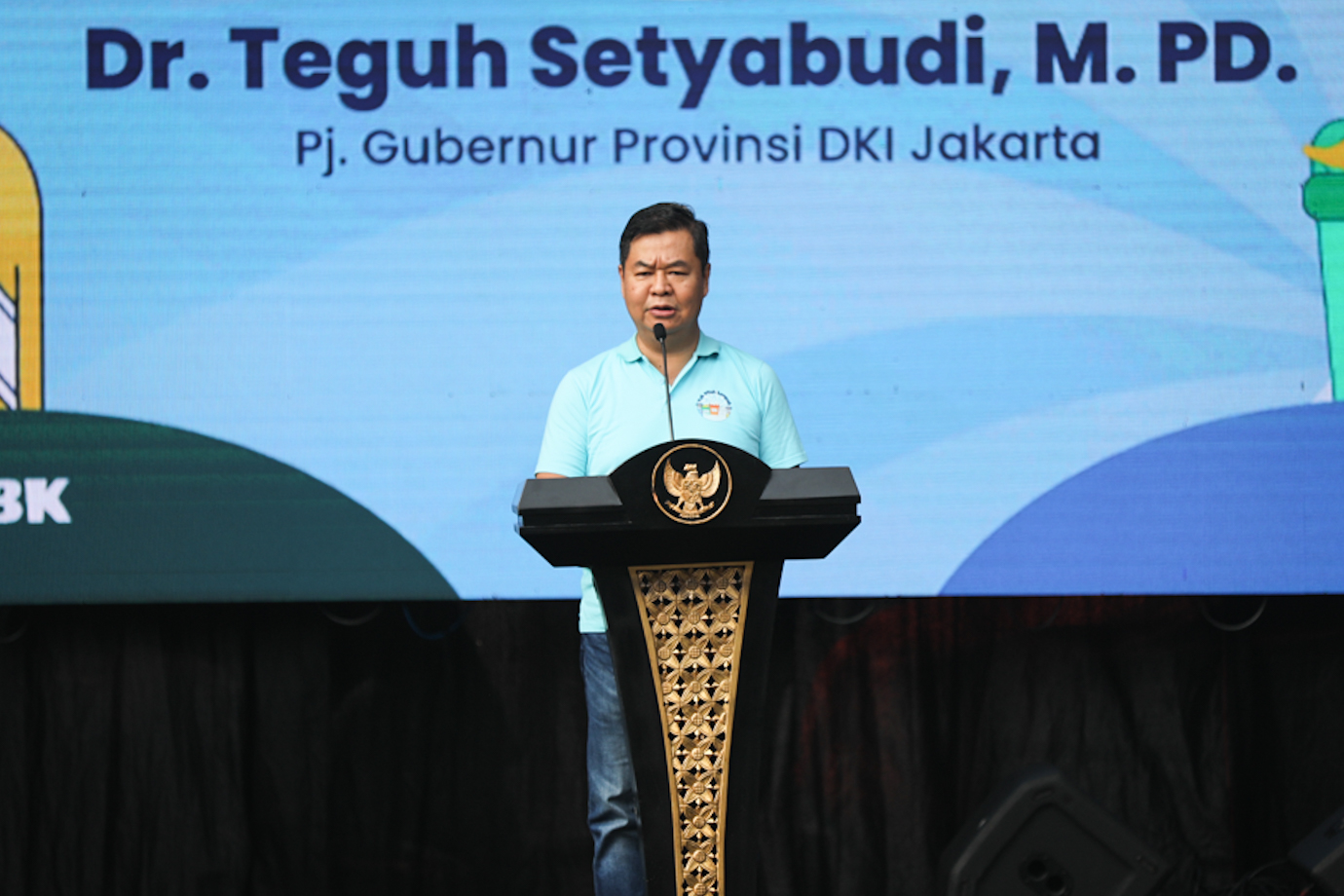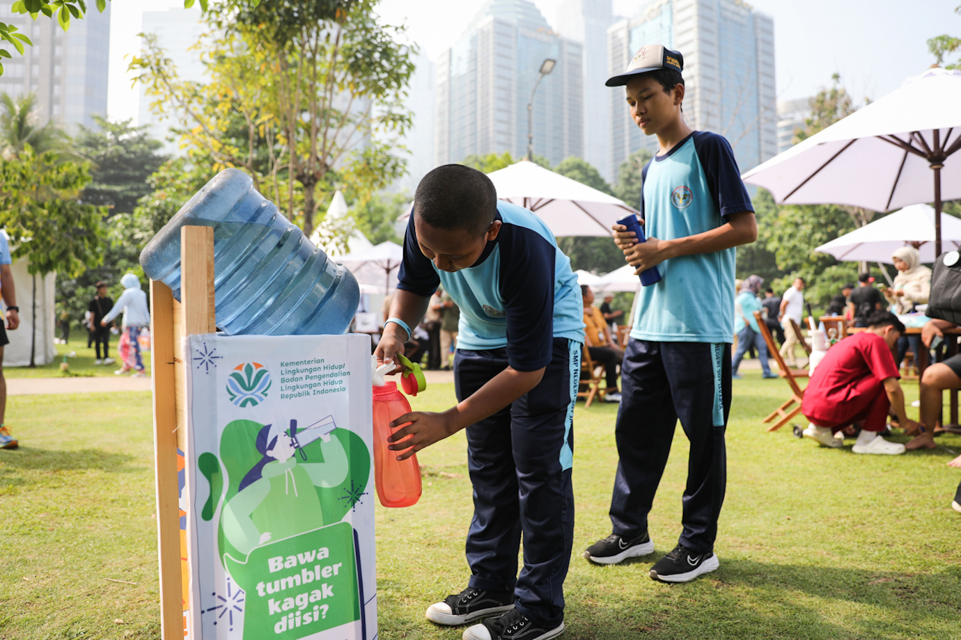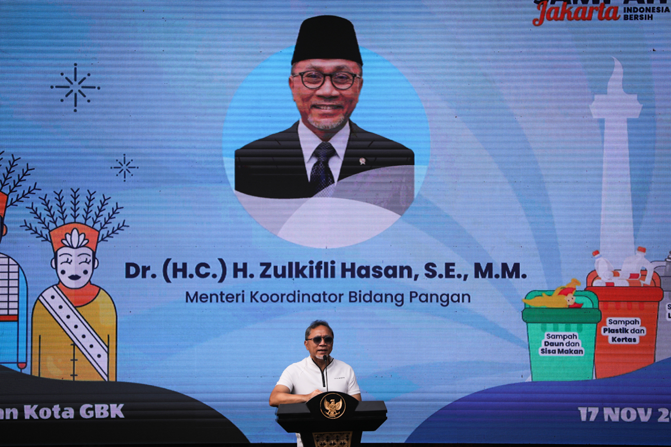Penjabat (Pj) Gubernur DKI Jakarta, Teguh Setyabudi menghadiri acara Kolaborasi Bersih Sampah Jakarta: Indonesia Bersih di Hutan Kota Gelora Bung Karno (GBK), Tanah Abang, Jakarta Pusat, Minggu (16/11).