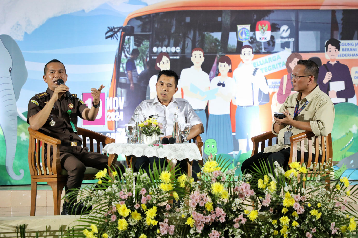 Sebanyak 300 pelajar Sekolah Menengah Atas (SMA) sederajat dan mahasiswa se-Jakarta Selatan mengikuti kegiatan edukasi gerakan antikorupsi, pencucian uang, bullying dan judi online, serta pungutan liar di Gedung Serba Guna, Taman Margasatwa Ragunan (TMR), Pasar Minggu, Selasa (19/11).
