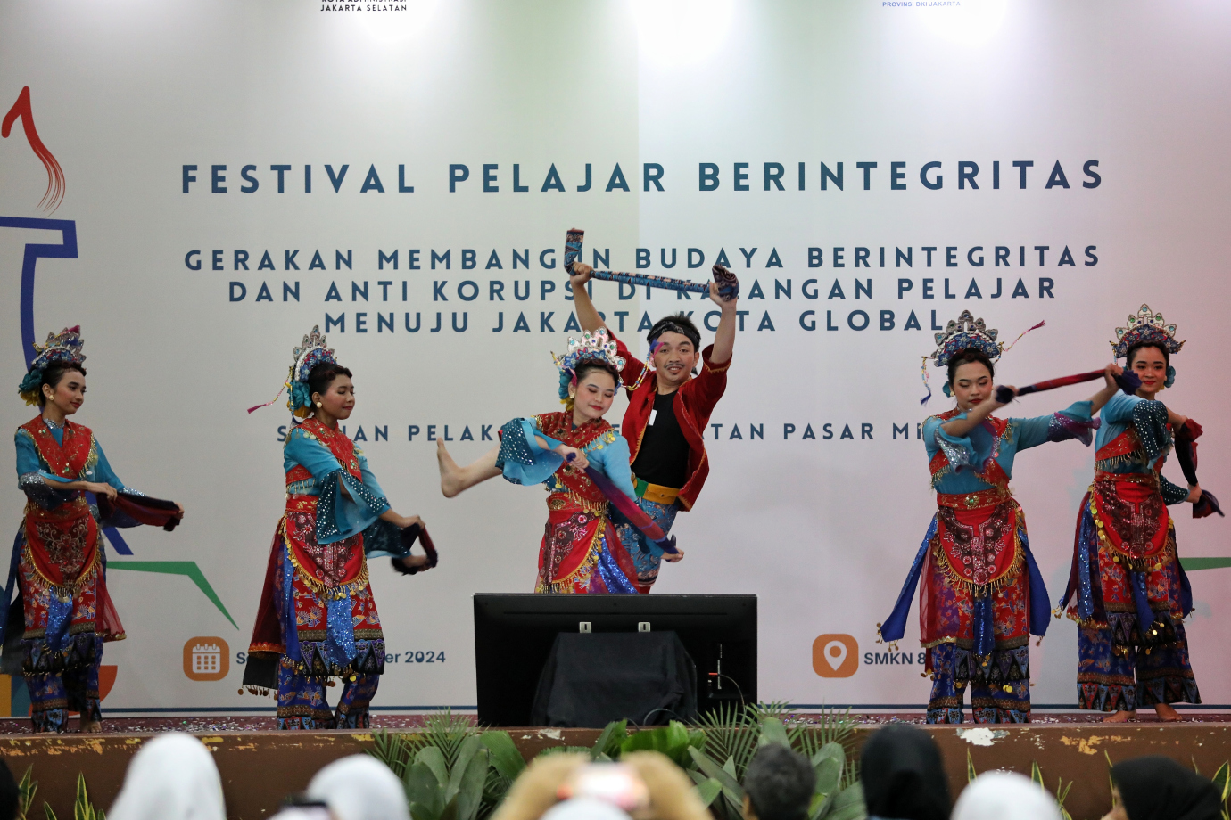 27 Tim pelajar se-Kecamatan Pasar Minggu mengikuti kegiatan Festival Pelajar Berintegritas Tahun 2024 di di SMKN 8 Jakarta, Jalan Pejaten Raya, Pejaten Barat, Pasar Minggu, Jakarta Selatan, Selasa (26/11). Kegiatan yang digelar oleh Inspektorat DKI Jakarta inj Mengusung tema \"Gerakan membangun budaya berintegritas dan antikorupsi di kalangan pelajar menuju kota global\".