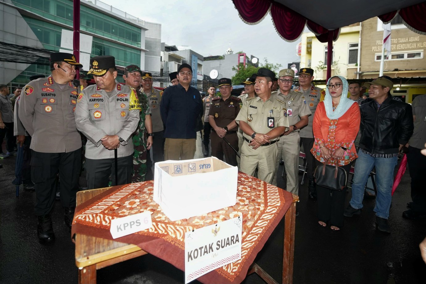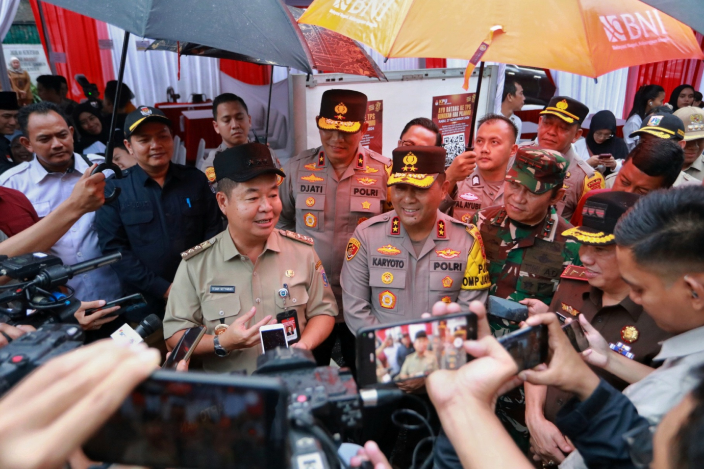 Penjabat (Pj) Gubernur DKI Jakarta, Teguh Setyabudi bersama Forkopimda DKI Jakarta, Bawaslu dan KPU DKI Jakarta meninjau berbagai fasilitas penunjang kesiapan Pemilihan Kepala Daerah (Pilkada) Tahun 2024 di TPS 022,023,024 Asrama Brimob, KS Tubun, Jakarta Barat dan TPS 01 Bendungan Hilir, Jakarta Pusat, Selasa (26/11). Dalam tinjauan ini Pj Gubernur Teguh bersama jajaran mengecek kesiapan TPS serta para petugas KPPS yang akan bertugas saat pilkada 2024 guna memastikan pemungutan suara aman dan lancar.
