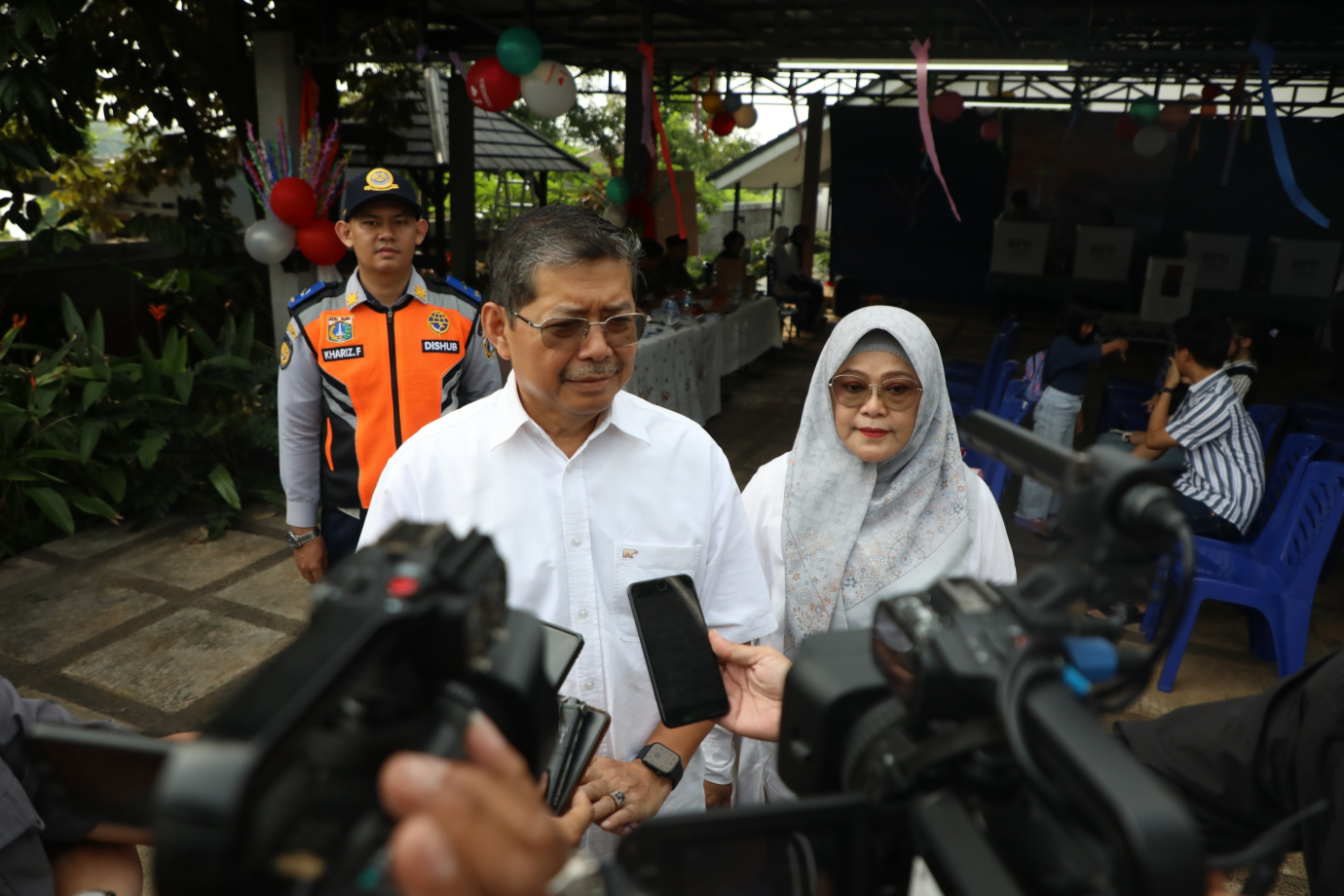 Sekretaris Daerah (Sekda) Provinsi DKI Jakarta, Marullah Matali bersama Ketua Dharma Wanita Persatuan (DWP) DKI Jakarta, Komariah Marullah Matali memberikan hak suaranya pada Pilkada 2024 di Tempat Pemungutan Suara (TPS) 010, Cilandak Permai Raya, Kelurahan Cilandak Barat, Kecamatan Cilandak, Jakarta Selatan, Rabu (27/11). Dalam kesempatan ini, Sekda Marullah juga menyampaikan apresiasinya kepada masyarakat Jakarta yang turut berpartisipasi dalam Pilkada 2024. Menurutnya, pemungutan suara Pilkada 2024 berlangsung dengan antusiasme tinggi dari masyarakat, mencerminkan semangat demokrasi warga Jakarta.