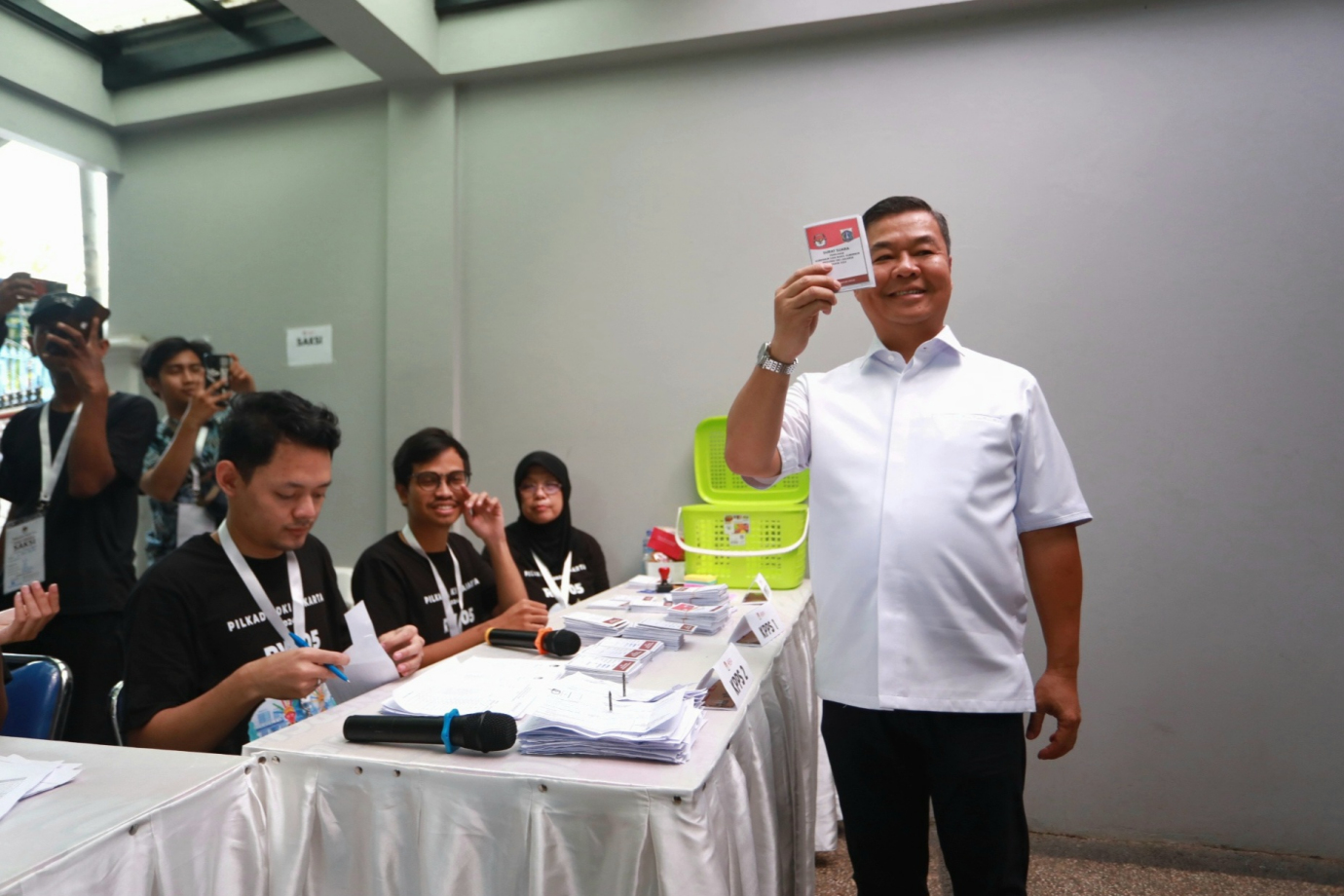 Pj Gubernur Teguh Nyoblos di TPS 031 Cempaka Timur