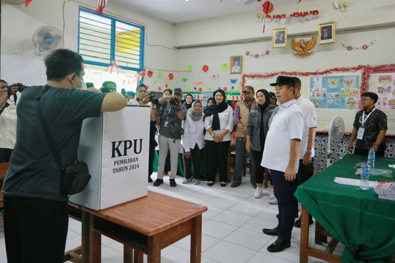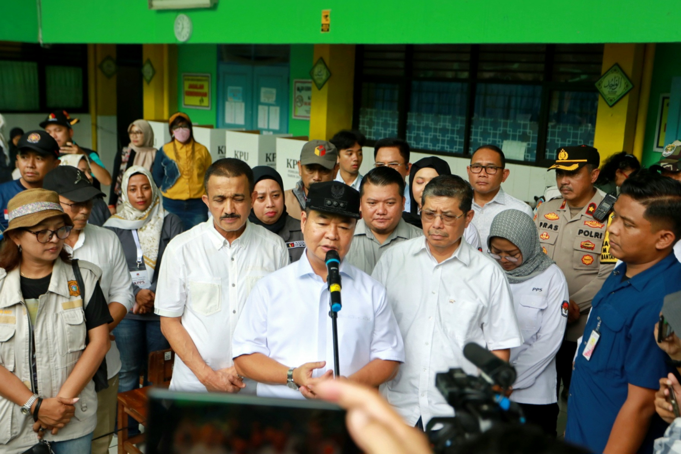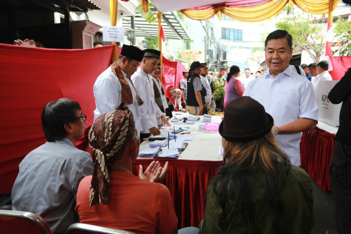 Penjabat (Pj) Gubernur DKI Jakarta, Teguh Setyabudi bersama jajaran Pemprov DKI Jakarta serta Forum Koordinasi Pimpinan Kota (Forkopimko) Jakarta Selatan dan Jakarta Timur meninjau sejumlah Tempat Pemungutan Suara (TPS) dalam kegiatan Pemilihan Gubernur dan Wakil Gubernur DKI Jakarta, Rabu (27/11). Dalam kegiatan ini Pj Gubernur DKI memastikan tempat pemungutan suara berjalan lancar, aman dan terkendali serta sudah mengupayakan mitigasi apabila terjadi terjadi hambatan seperti hujan lebat saat berlangsungnya pemungutan suara.