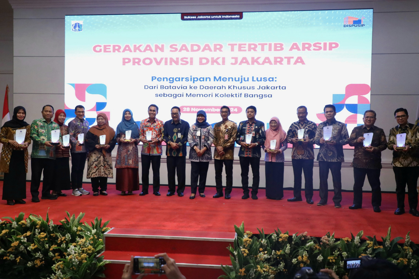 Dinas Perpustakaan dan Kearsipan (Dispusip) Provinsi DKI Jakarta menggelar acara Gerakan Sadar Tertib Arsip (GSTA) Pemerintah Provinsi (Pemprov) DKI Jakarta Tahun 2024 di The Tavia Haritage Hotel, Jalan Letjen Suprapto, Cempaka Putih Barat, Cempaka Putih, Jakarta Pusat, Kamis (28/11). Dalam acara ini Dispusip DKI Jakarta memberikan penghargaan kepada kepada 10 OPD dan tiga BUMD yang telah melakukan pencatatan arsip dengan kategori memuaskan dan sangat memuaskan dan diberikan langsung oleh Plt Asisten Sekda DKI Jakarta Bidang Kesejahteraan Rakyat, Suharini Eliawati.