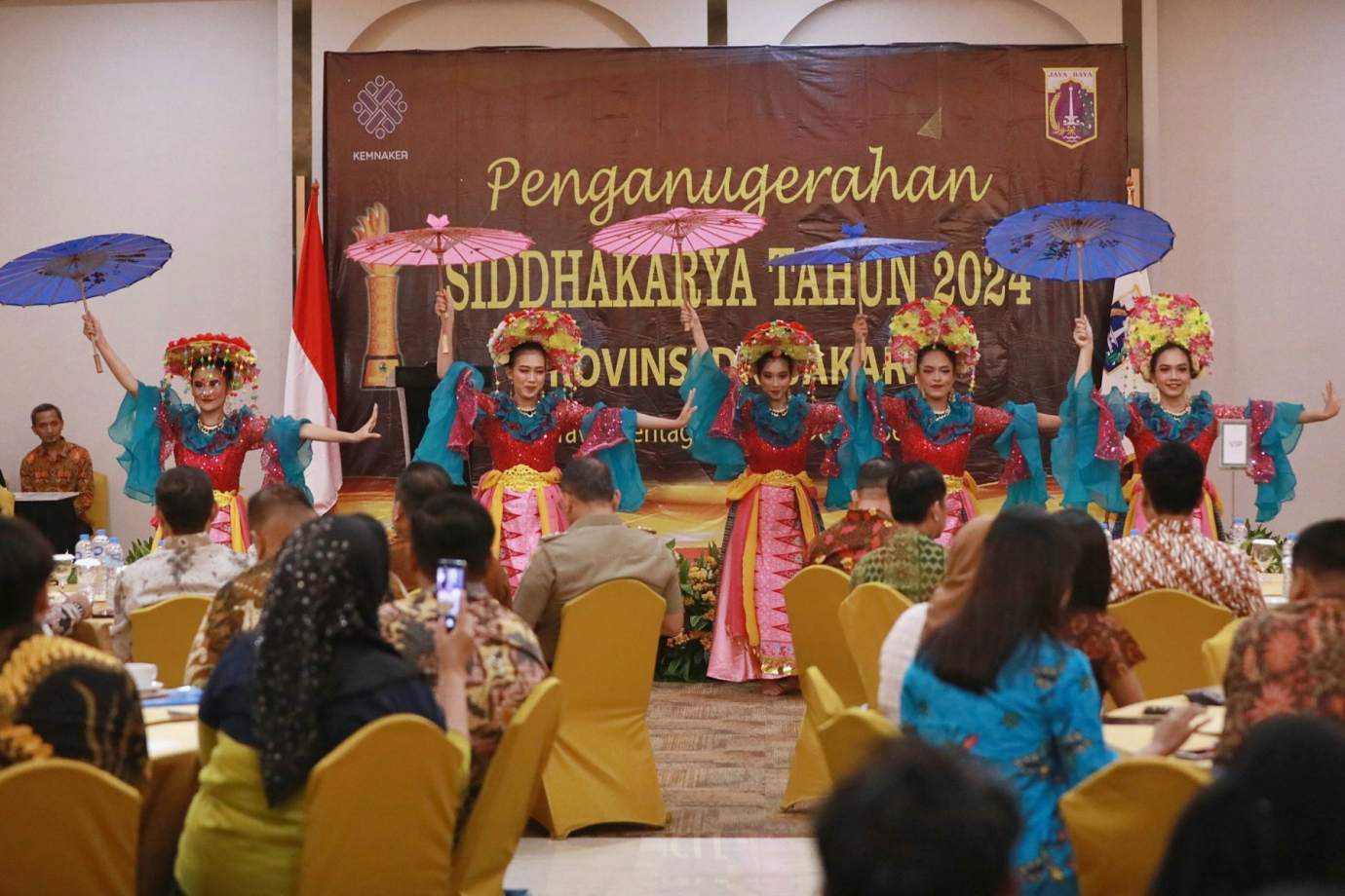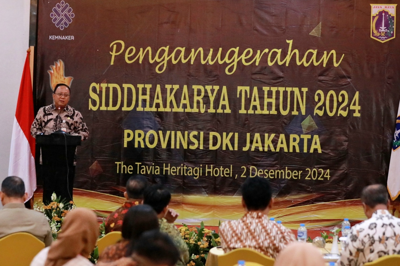 Sekretaris Daerah (Sekda) Provinsi DKI Jakarta, Marullah Matali menghadiri dan menyerahkan Penghargaan Produktivitas Siddhakarya Tingkat Provinsi DKI Jakarta Tahun 2024 kepada 10 perusahaan dengan dua Kategori yaitu unggul dan berkembang di The Tavia Heritage Hotel, Cempaka Putih, Jakarta Pusat, Senin (2/12). Penghargaan Shiddakarya ini merupakan bentuk penghargaan dari Pemerintah kepada perusahaan yang berhasil mempertahankan dan meningkatkan tingkat produktivitas yang berkesinambungan selama tiga tahun terakhir berturut-turut dari tahun 2021,2022, dan 2023 kepada perusahaan kecil, menengah dan besar.