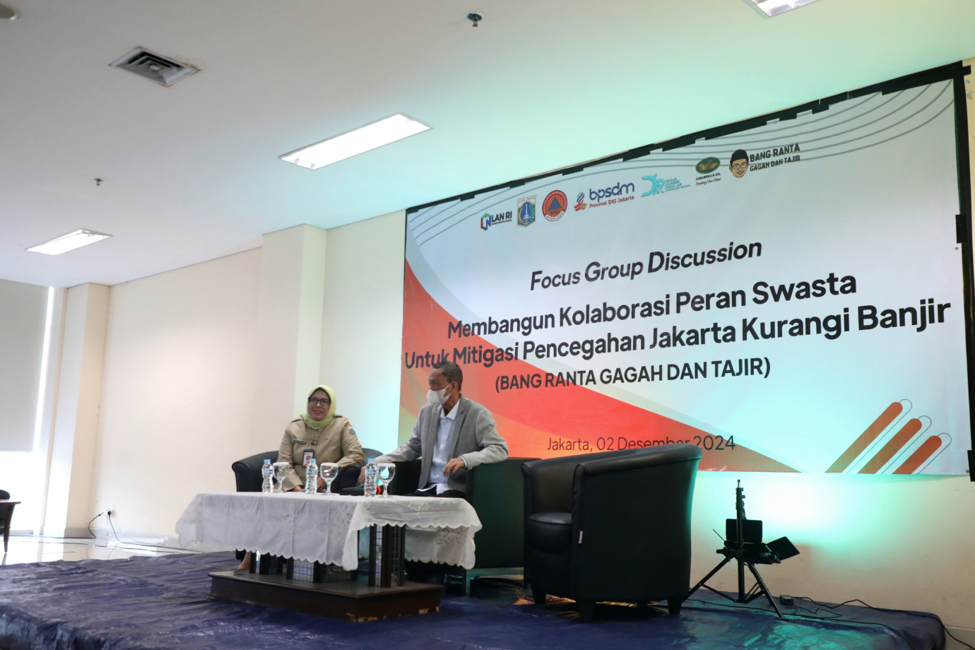 Badan Penanggulangan Bencana Daerah (BPBD) DKI Jakarta menggelar Focus Group Discussion (FGD) dengan tema Membangun Kolaborasi Peran Swasta untuk Mitigasi Pencegahan Jakarta Kurangi Banjir (Bang Ranta Gagah dan Tajir) di lantai dua Gedung Dinas Penanggulangan Kebakaran dan Penyelamatan (Gulkarmat) Provinsi DKI Jakarta, Jalan Kyai Haji Zainul Arifin, Duri Pulo, Gambir, Jakarta Pusat, Senin (2/12). Kegiatan FGD Bang Ranta Gagah dan Tajir merupakan proyek perubahan untuk mengatasi dampak banjir secara komprehensif, diikuti 100 peserta terdiri dari unsur swasta, akademisi, organisasi masyarakat, warga, LSM dan Stakeholder pemerintahan terkait.