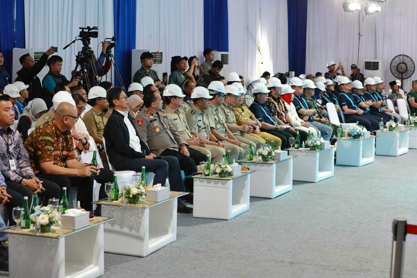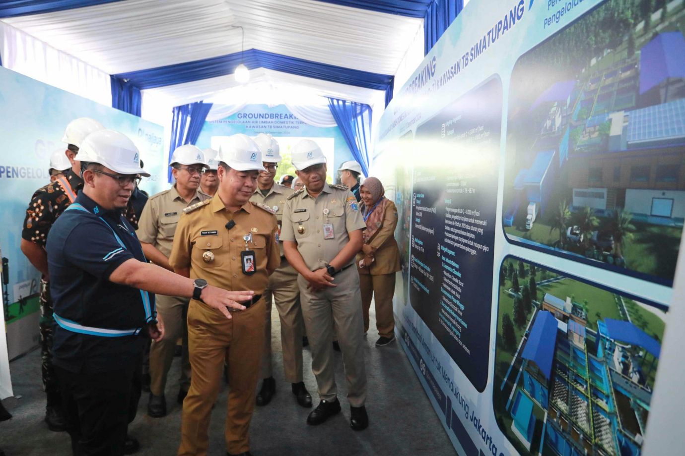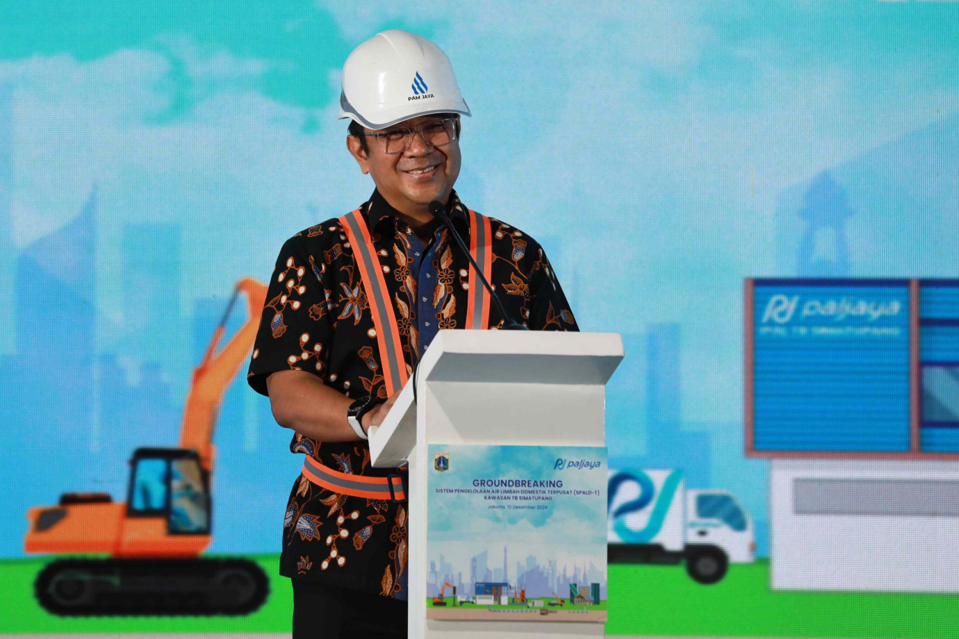 Penjabat (Pj) Gubernur DKI Jakarta, Teguh Setyabudi melaksanakan Groundbreaking pembangunan Sistem Pengelolaan Air Limbah Domestik Terpusat (SPALD-T) melalui jaringan perpipaan air limbah kawasan TB Simatupang di Cilandak, Jakarta Selatan, Selasa (10/12). Pembangunan SPALD-T ini direncananya untuk mengolah air limbah domestik dari area pemukiman maupun komersial di kawasan TB Simatupang menggunakan teknologi Moving Bed Biofilm Reactor (MBBR) yang dapat melayani sekitar 114.000 jiwa di tiga kecamatan, Kota Jakarta Selatan.