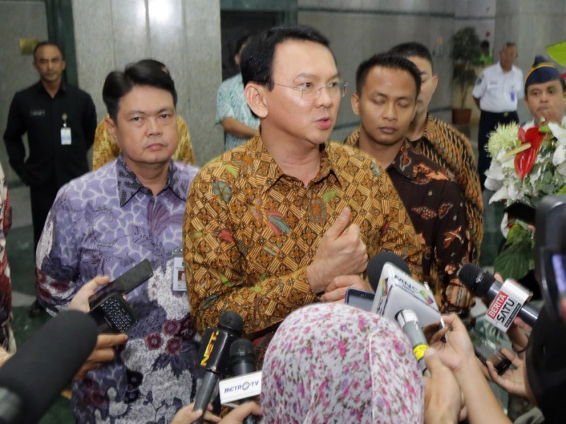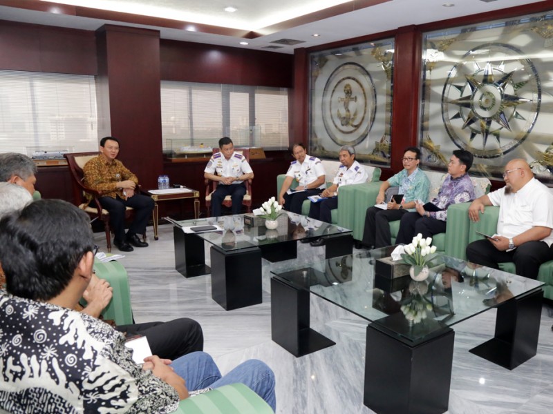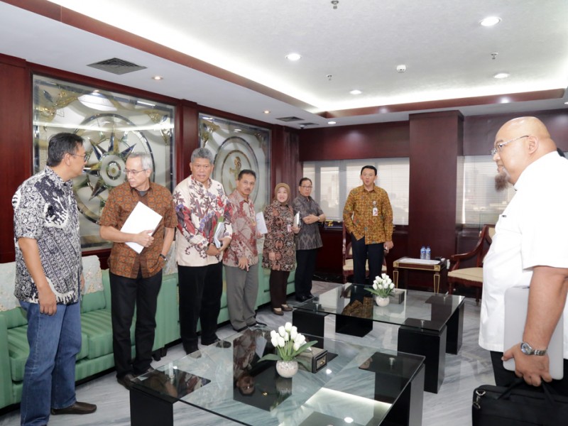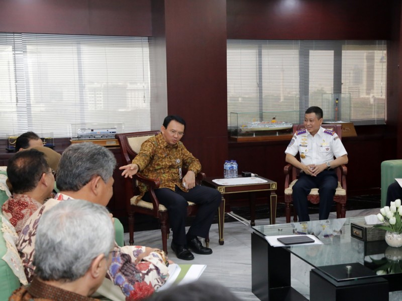Gubernur DKI Jakarta, Basuki Tjahaja Purnama melakukan rapat dengan Menteri Perhubungan Republik Indonesia, Ignasius Jonan, Jumat (11/9/2015). Pertemuan berlangsung di Kantor Kementerian Perhubungan, Jalan Medan Merdeka Barat, Gambir, Jakarta Pusat. Dalam kesempatan tersebut dilakukan pembahasan terkait proyek moda transportasi massal Lihgt Rail Transit (LRT). (Foto : Yopie/Beritajakarta.com)