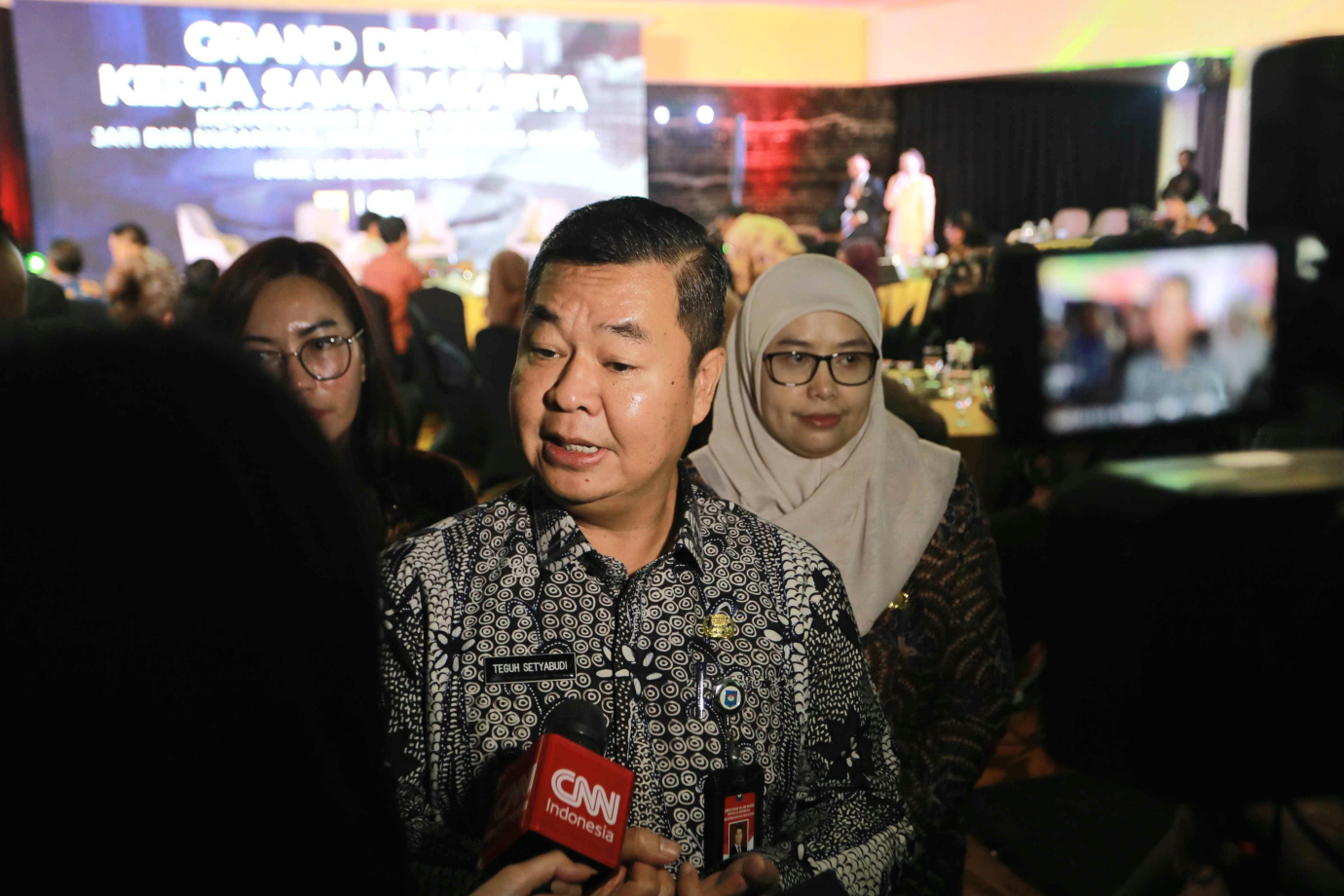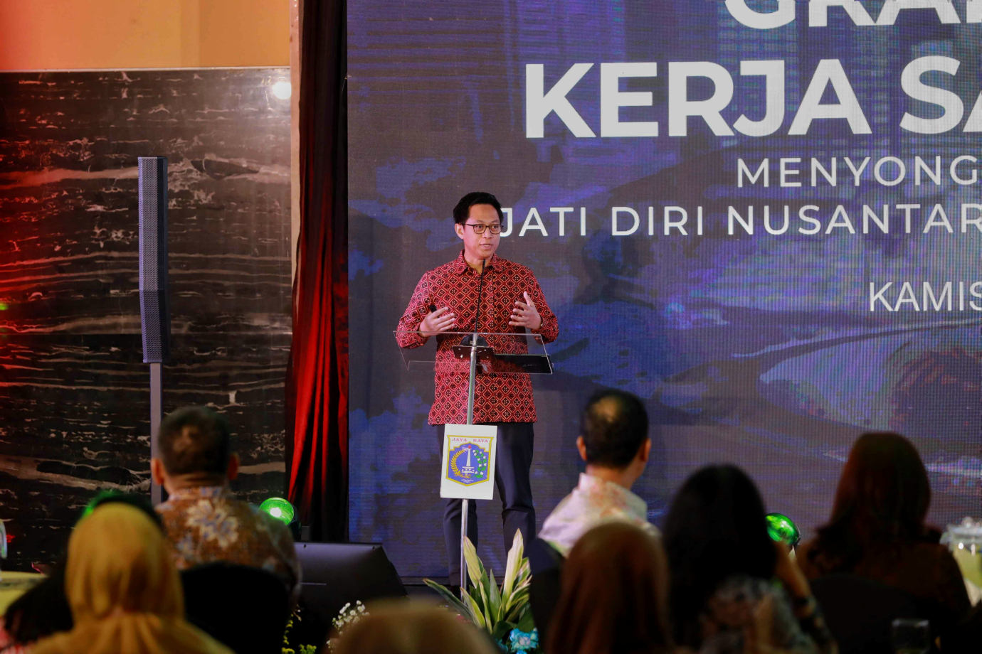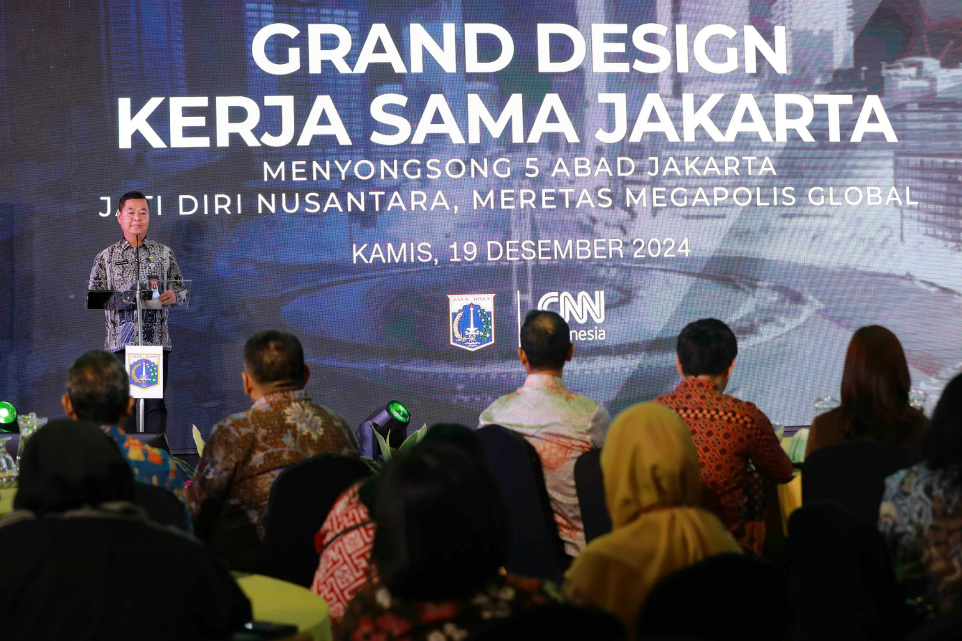 Penjabat (Pj) Gubernur DKI Jakarta, Teguh Setyabudi membuka acara penyampaian Grand Design dan Kaleidoskop Kerja Sama Daerah \'Menyongsong Lima Abad Jakarta: Jati Diri Nusantara, Meretas Megapolis Global\' di Hotel Borobudur, Sawah Besar, Jakarta Pusat, Kamis (19/12). Dalam acara ini Pj Gubernur DKI berharap Grand Design 2025-2045 ini dapat menjadi peta jalan khususnya bagi pemerintah provinsi dan seluruh OPD termasuk BUMD yang ada di Jakarta serta disinkronkan dengan perencanaan kerja seperti Rencana Pembangunan Daerah (RPD) tahunan dan kerja sama lima tahunan sehingga terencana secara sistematis.