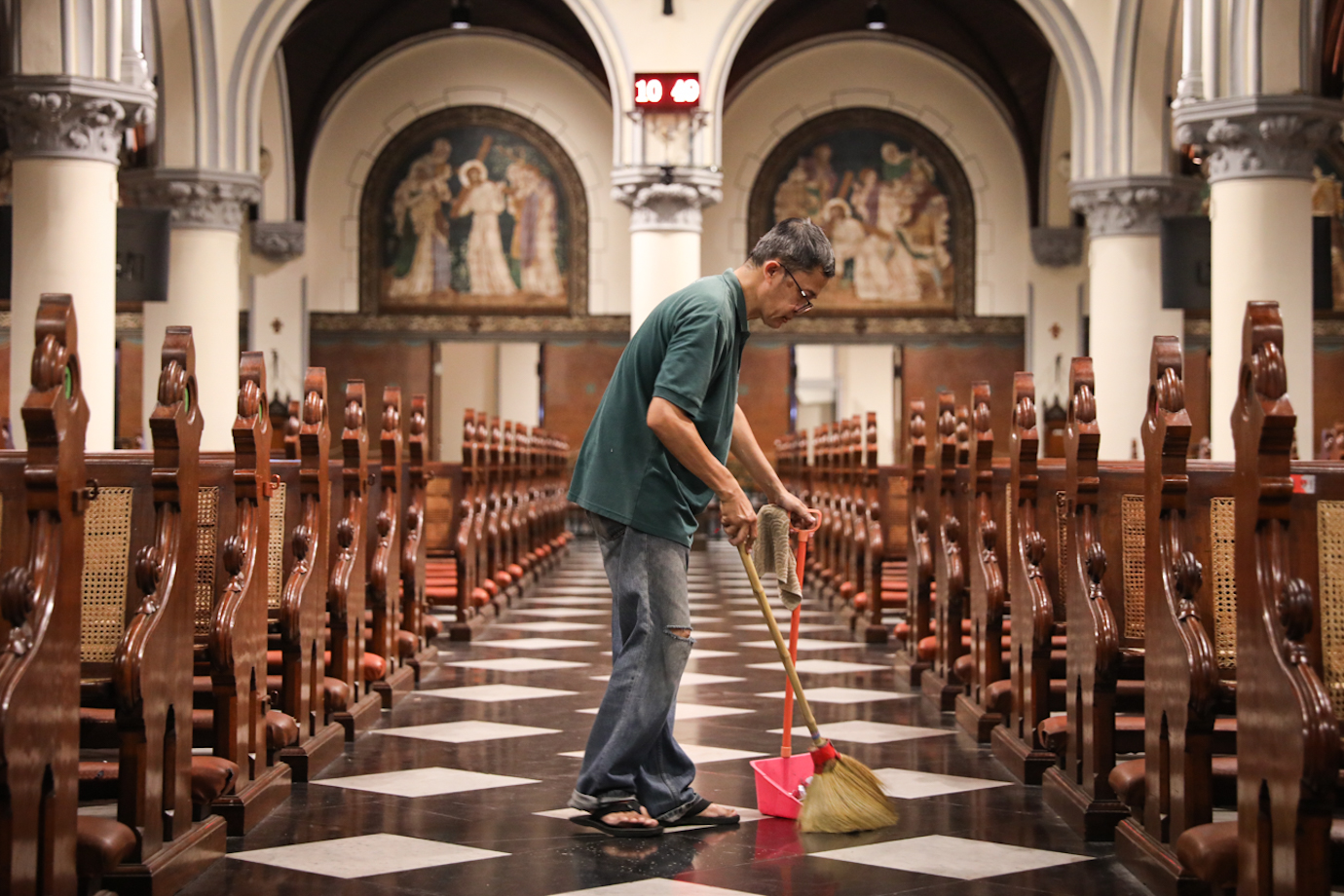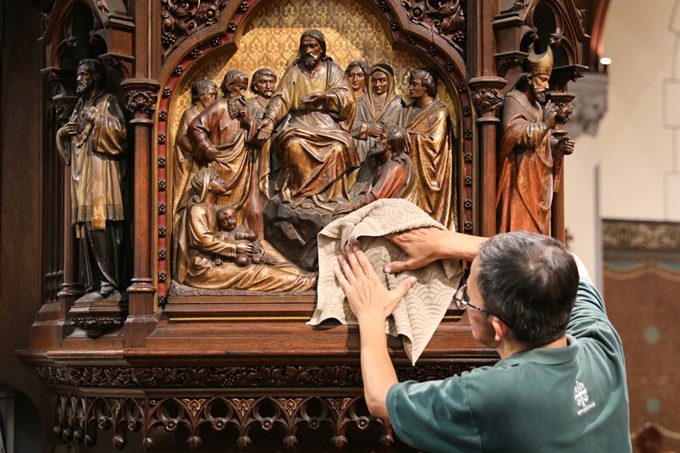 Petugas menyiapkan dekorasi Natal dan membersihkan area Gereja Katedral Jakarta di Jalan Katedral, Sawah Besar, Jakarta Pusat, Senin (23/12). Misa malam Natal di Gereja Katedral Jakarta akan berlangsung pada Selasa (24/12) pukul 17.00 dan 20.00, sedangkan misa Hari Raya Natal terbagi ke dalam tiga sesi, yakni pukul 08.30, 11.00, dan 17.00 pada 25 Desember 2024.