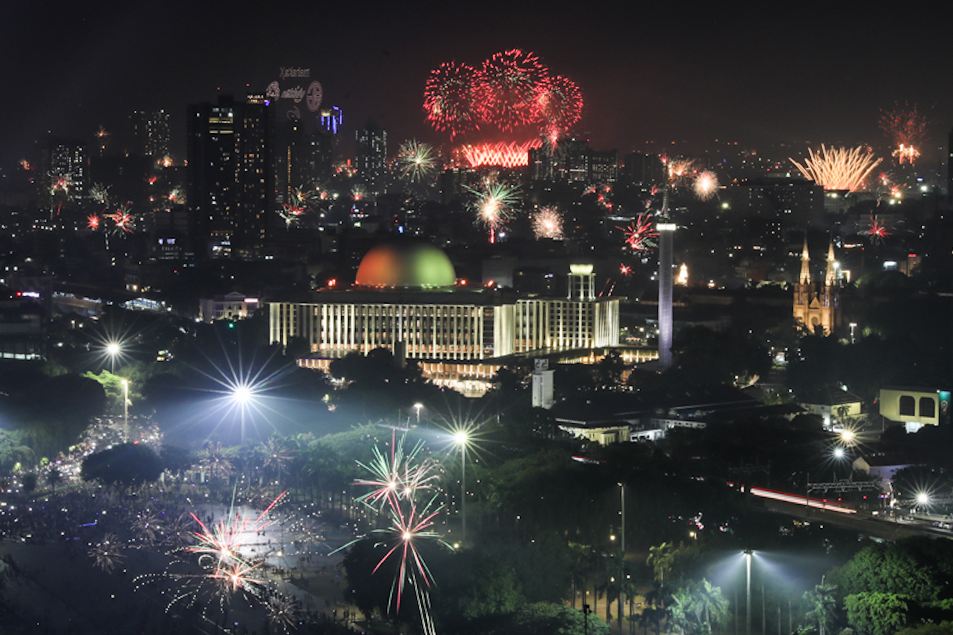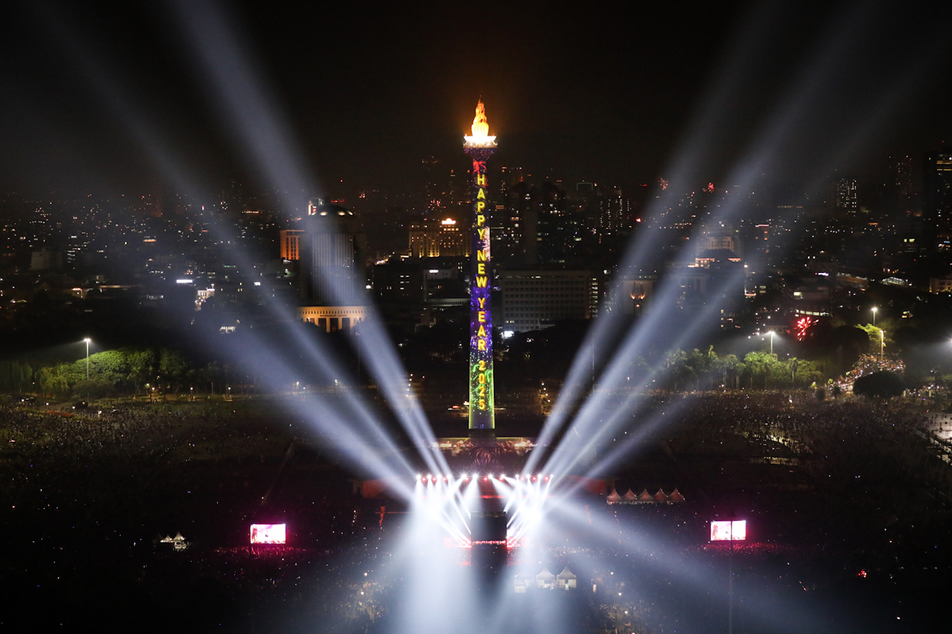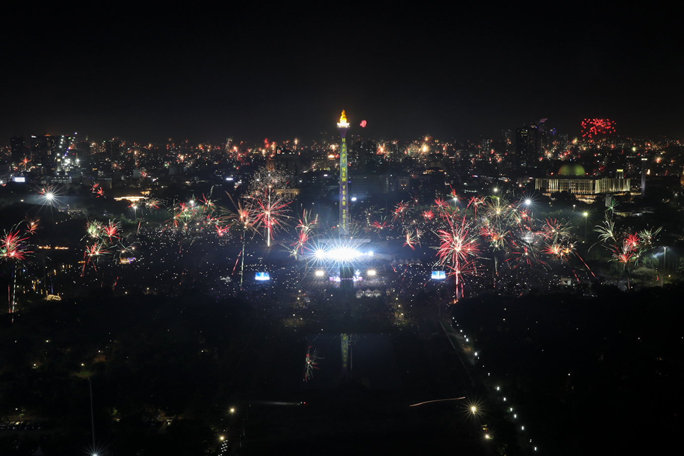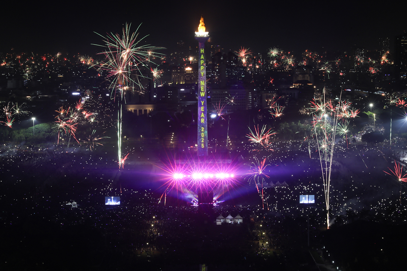 Warna-warni Kembang Api di Monas Saat Tahun Baru 2025