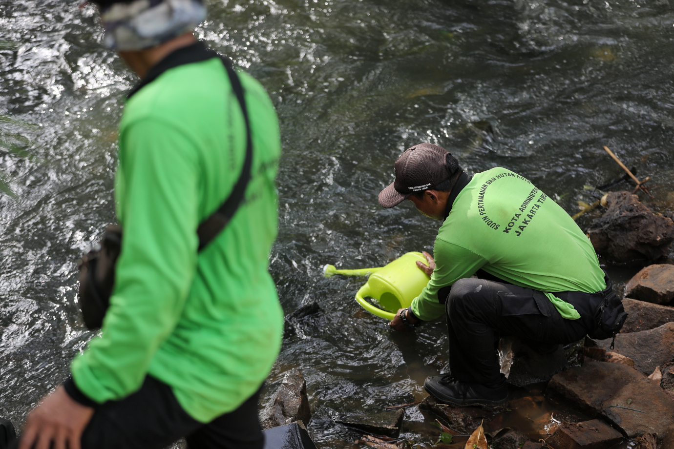 Suku Dinas Pertamanan dan Hutan (Tamhut) Jakarta Timur, melakukan penanaman 10 pohon tabebuya kuning di Taman Abdulrahman di Jalan Abdulrahman, Cibubur, Ciracas, Jakarta Timur, Jumat (3/1). Penanaman ini dalam rangka menjadikan kota Jakarta yang lebih hijau lagi dalam menyongsong 5 abad kota Jakarta pada tahun 2027 mendatang, sehingga udara di wilayah DKI Jakarta diharapkan semakin segar.