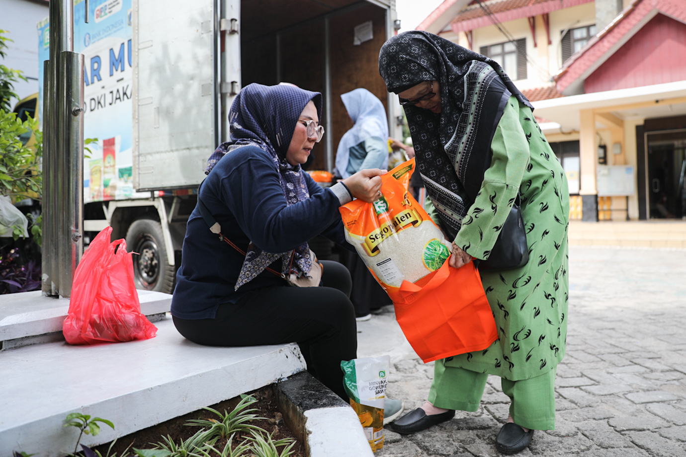 Sejumlah warga membeli bahan kebutuhan pokok di pasar murah yang digelar di Kantor Kelurahan Utan Kayu Selatan, Matraman, Jakarta Timur, Jumat (3/1). Pemerintah Provinsi (Pemprov) DKI Jakarta melalui BUMD PT Food Station Tjipinang Jaya bekerja sama dengan Bank Indonesia kanwil Jakarta menggelar pasar murah pada 2-3 Januari 2025 di delapan lokasi berbeda untuk menekan inflasi pada awal tahun.