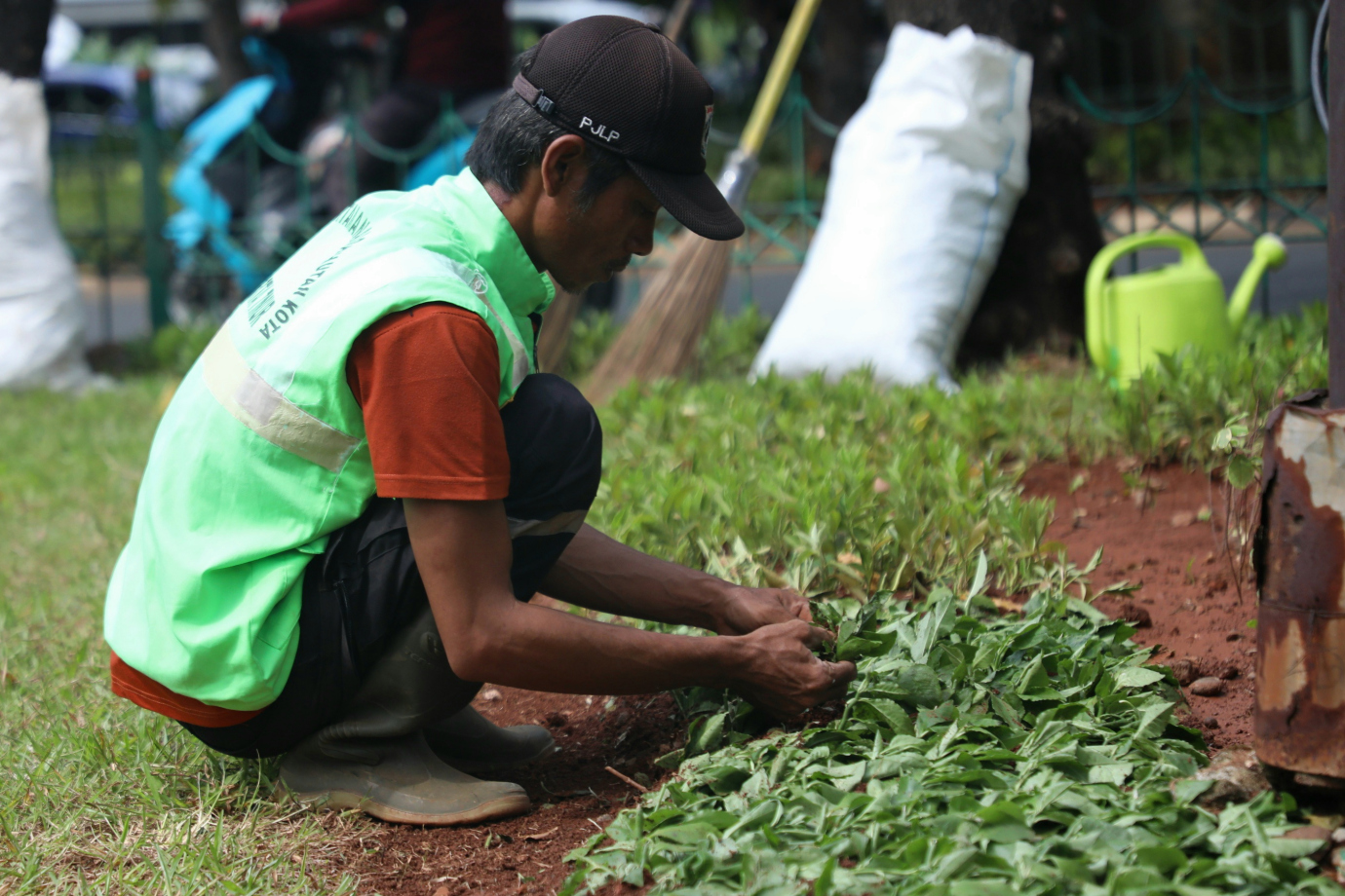 Jalur Hijau di Jalan Radin Inten Dipercantik Ratusan Tanaman Hias
