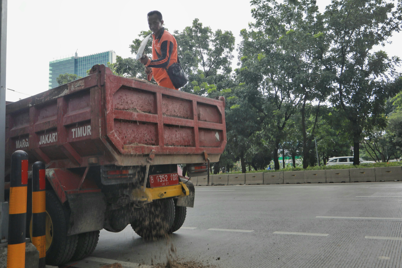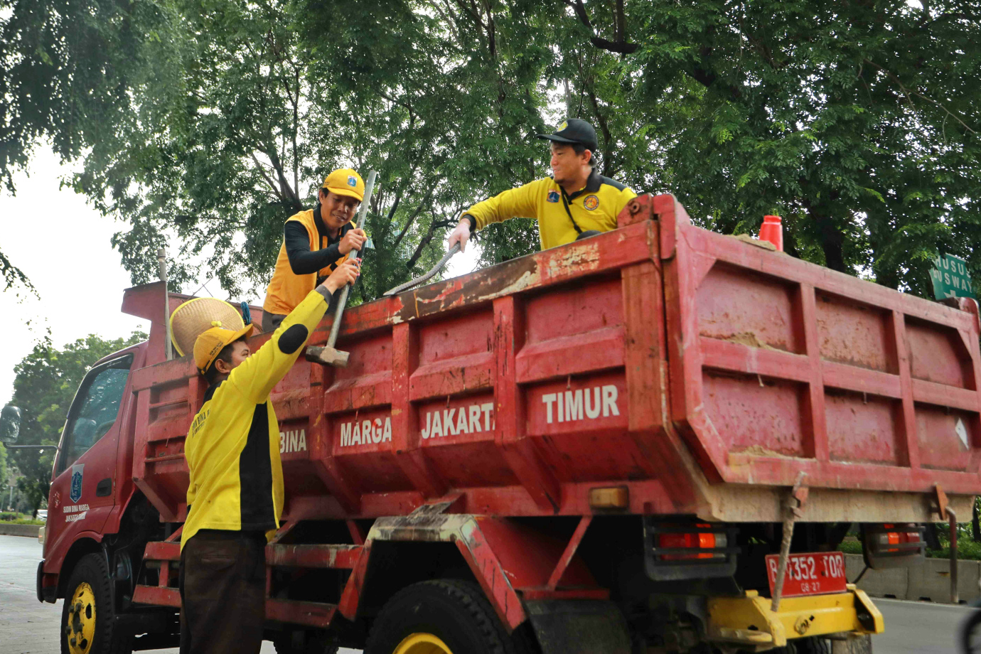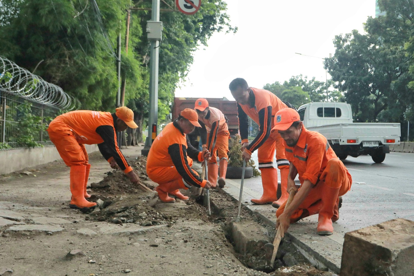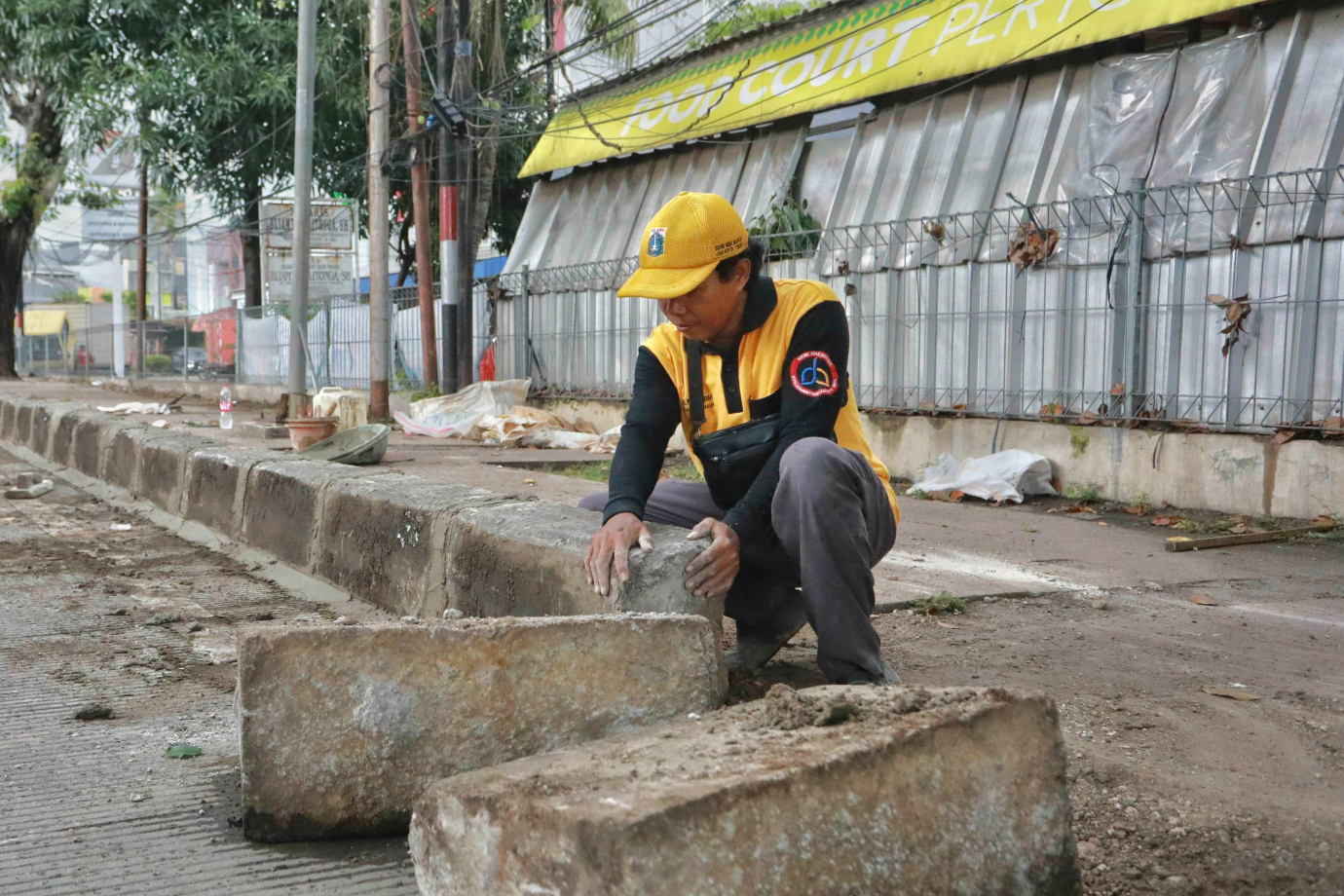 Petugas Gabungan Perbaiki Kanstin Beton di Pulogadung
