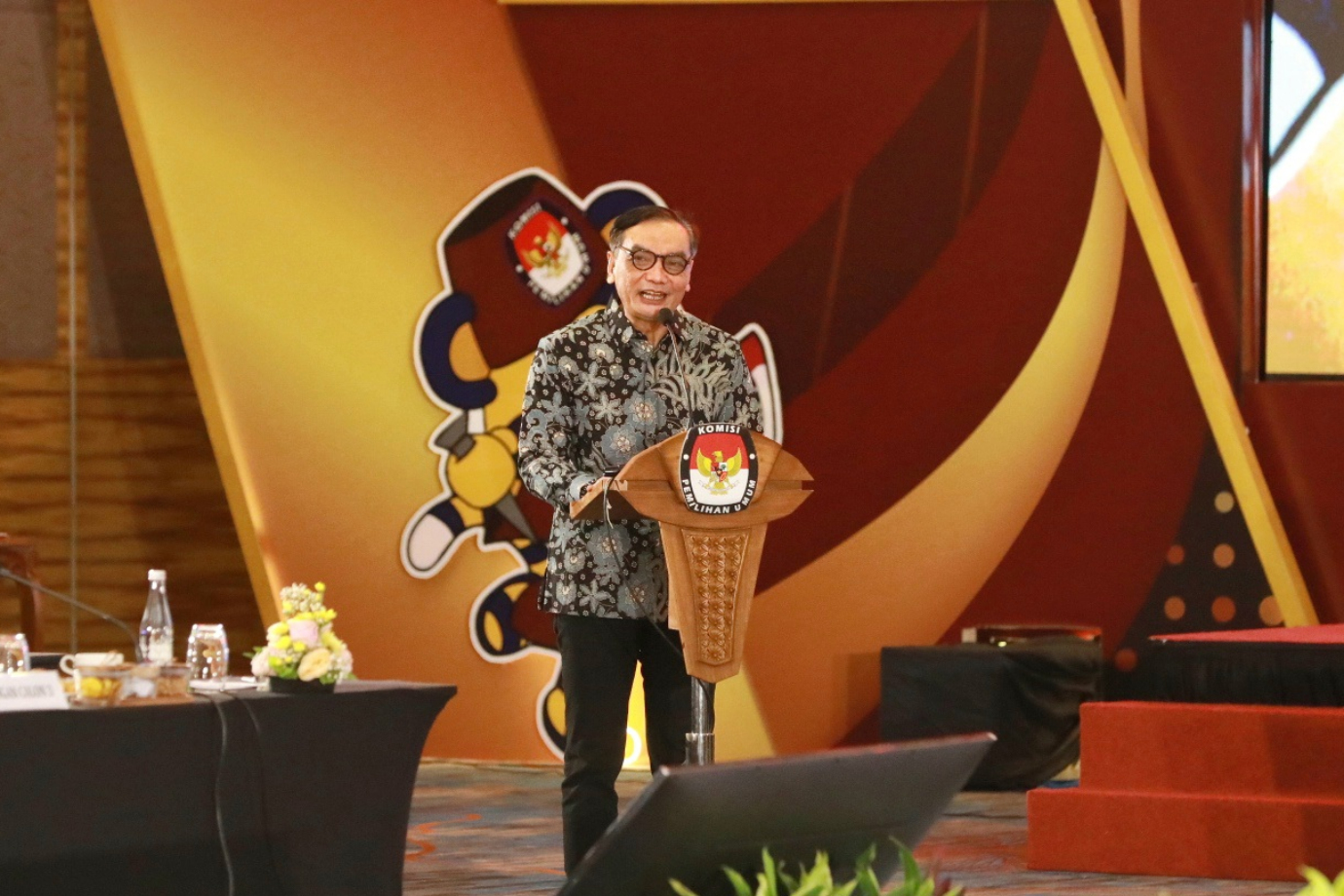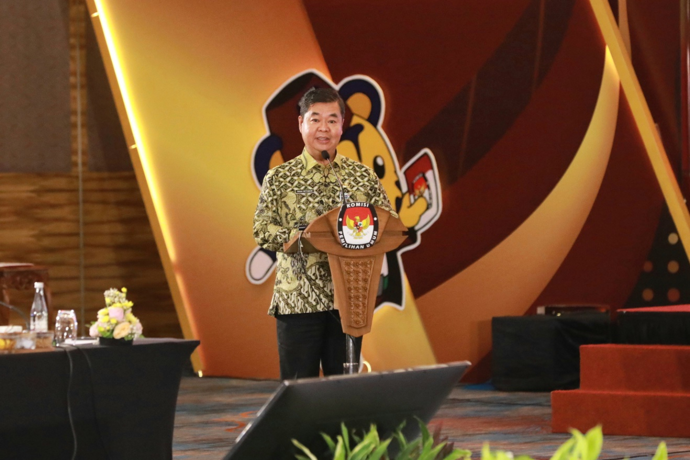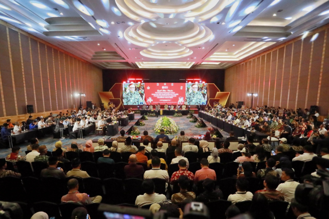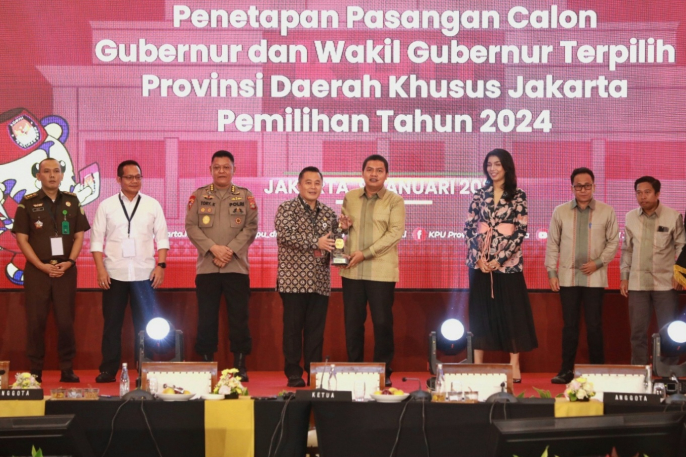 Penjabat (Pj) Gubernur DKI Jakarta, Teguh Setyabudi menghadiri Rapat Pleno Terbuka Penetapan Pasangan Terpilih Calon Gubernur dan Wakil Gubernur Provinsi DKI Jakarta 2024 di Hotel Pullman Jakarta Central Park, Tanjung Duren Selatan, Grogol Petamburan, Jakarta Barat, Kamis (9/1). Dalam sambutannya Pj Gubernur DKI mengucapkan selamat kepada pasangan Gubernur dan Wakil Gubernur DKI Jakarta terpilih serta mengapresiasi penyelenggaran Pilkada serentak di Jakarta secara kondusif, jujur, adil, transparan dan berintegritas.