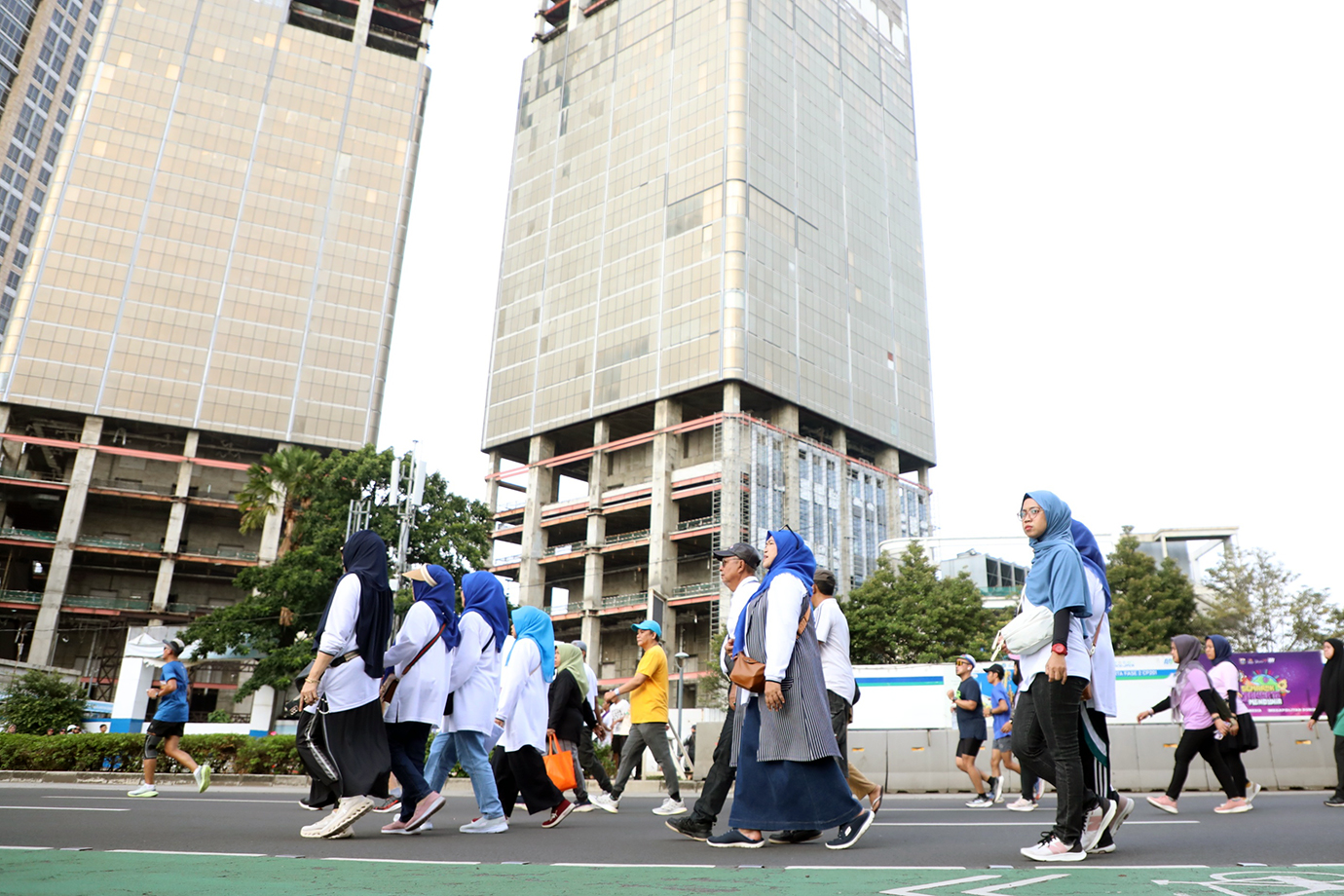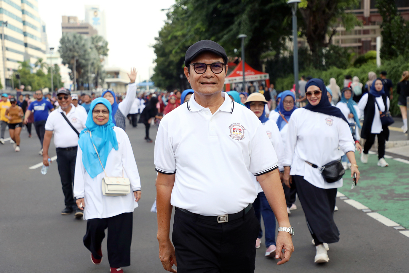 Komunitas Kanti Lamo Kerinci menggelar kegiatan Jalan Santai di area Car Free Day (CFD) Jalan Sudirman-MH Thamrin, Minggu (12/1).