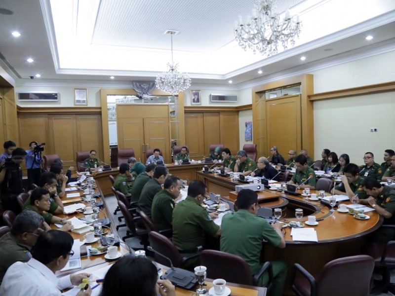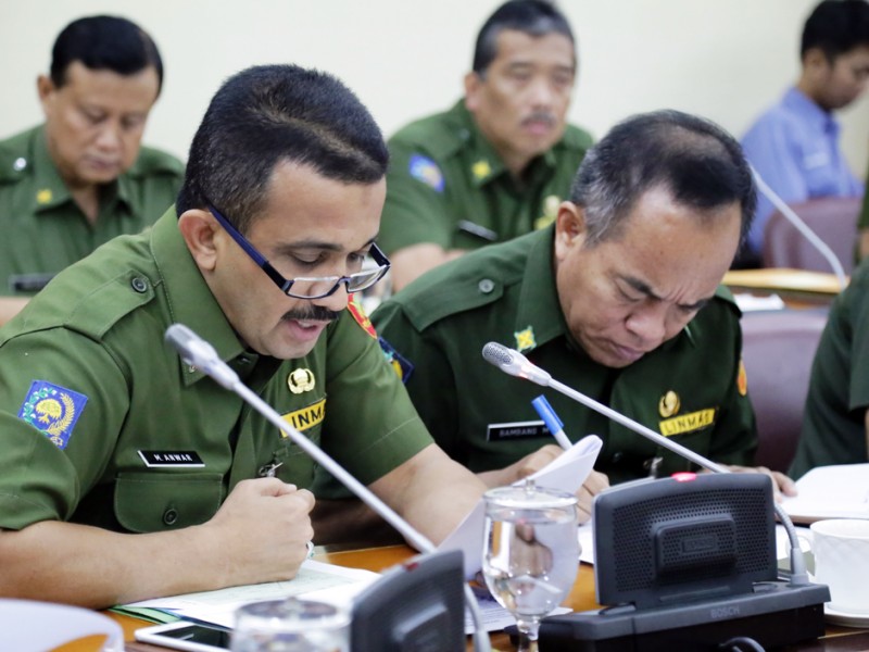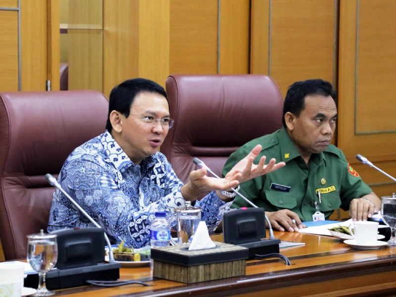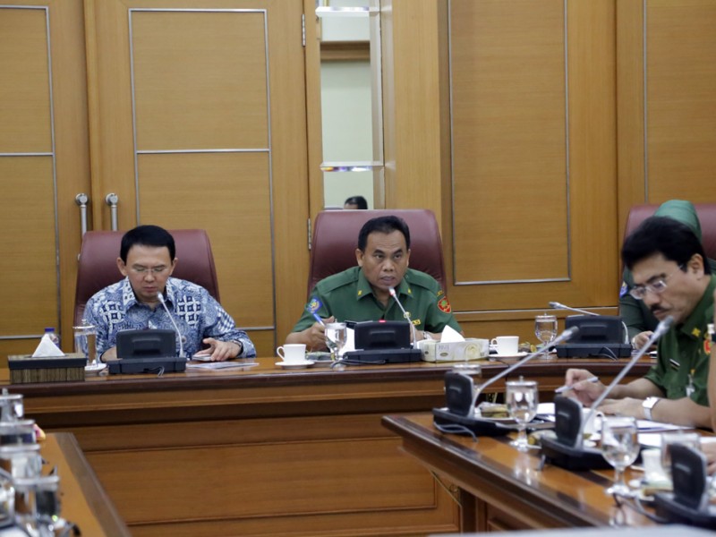 Gubernur DKI Jakarta, Basuki Tjahaja Purnama memimpin rapat bersama sejumlah Kepala Satuan Kerja Perangkat Daerah (SKPD), di Balai Kota DKI Jakarta, Senin (14/9/2015). Pembahasan rapat diantaranya terkait, kinerja Dinas Penanggulangan Kebakaran dan Penyelamatan DKI Jakarta, lahan di Taman BMW serta paparan revisi Undang Undang Nomor 29 Tahun 2007. (Foto : Yopie/Beritajakarta.com)
