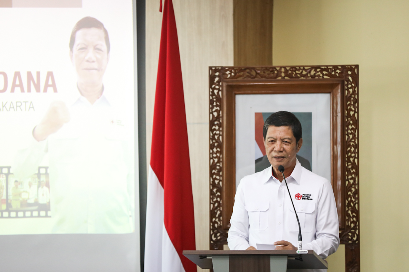 Sekretaris Daerah Provinsi DKI Jakarta, Marullah Matali memberikan sambutan sekaligus menutup dan membubarkan panitia Bulan Dana PMI DKI Jakarta tahun 2024 di Grha Ali Sadikin, Balai Kota, Gambir, Jakarta Pusat, Rabu (15/1). PMI DKI Jakarta berhasil mengumpulkan dana sebanyak Rp39,7 miliar selama Bulan Dana tahun 2024 yang berlangsung pada 1 September hingga 30 Novemver 2024.