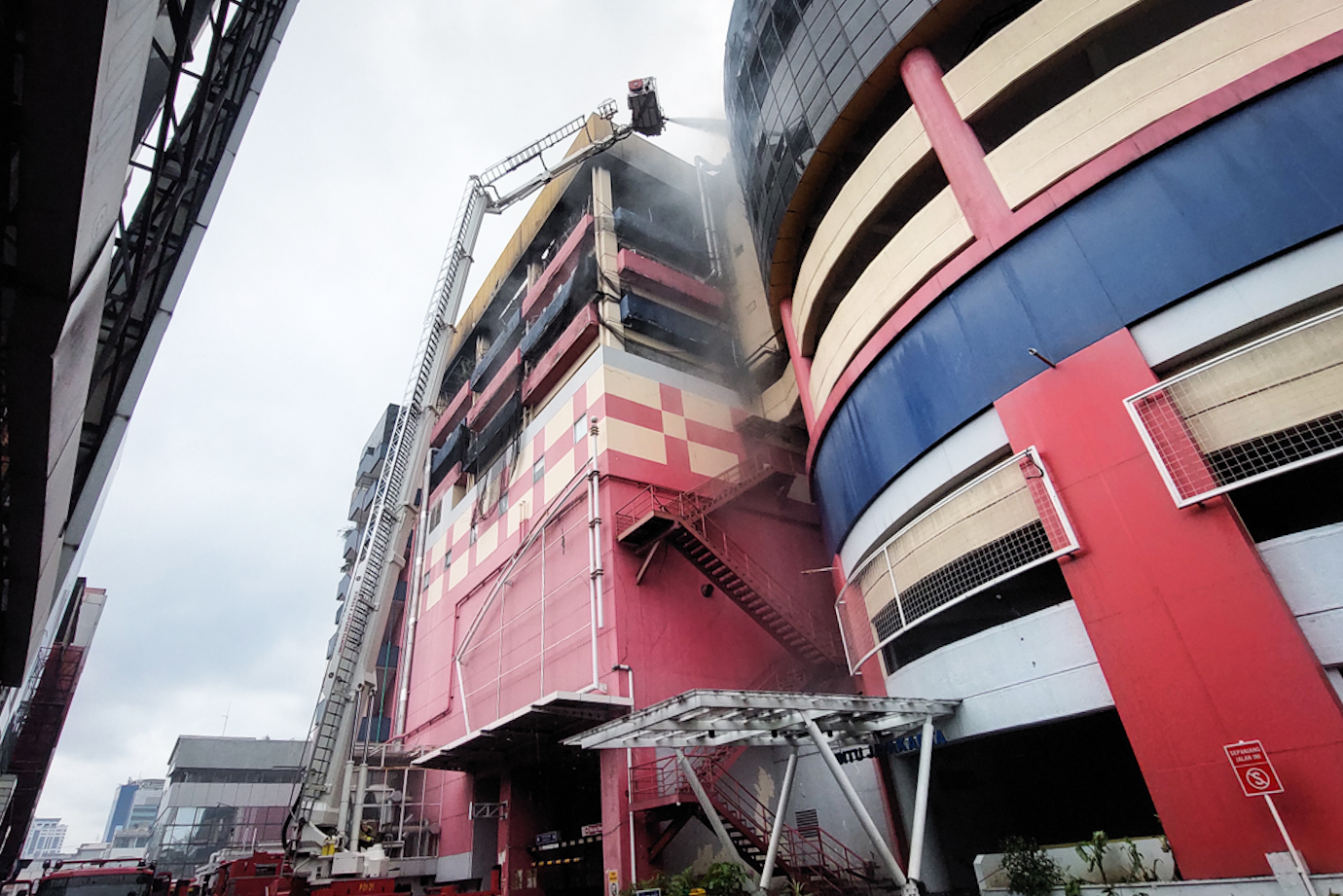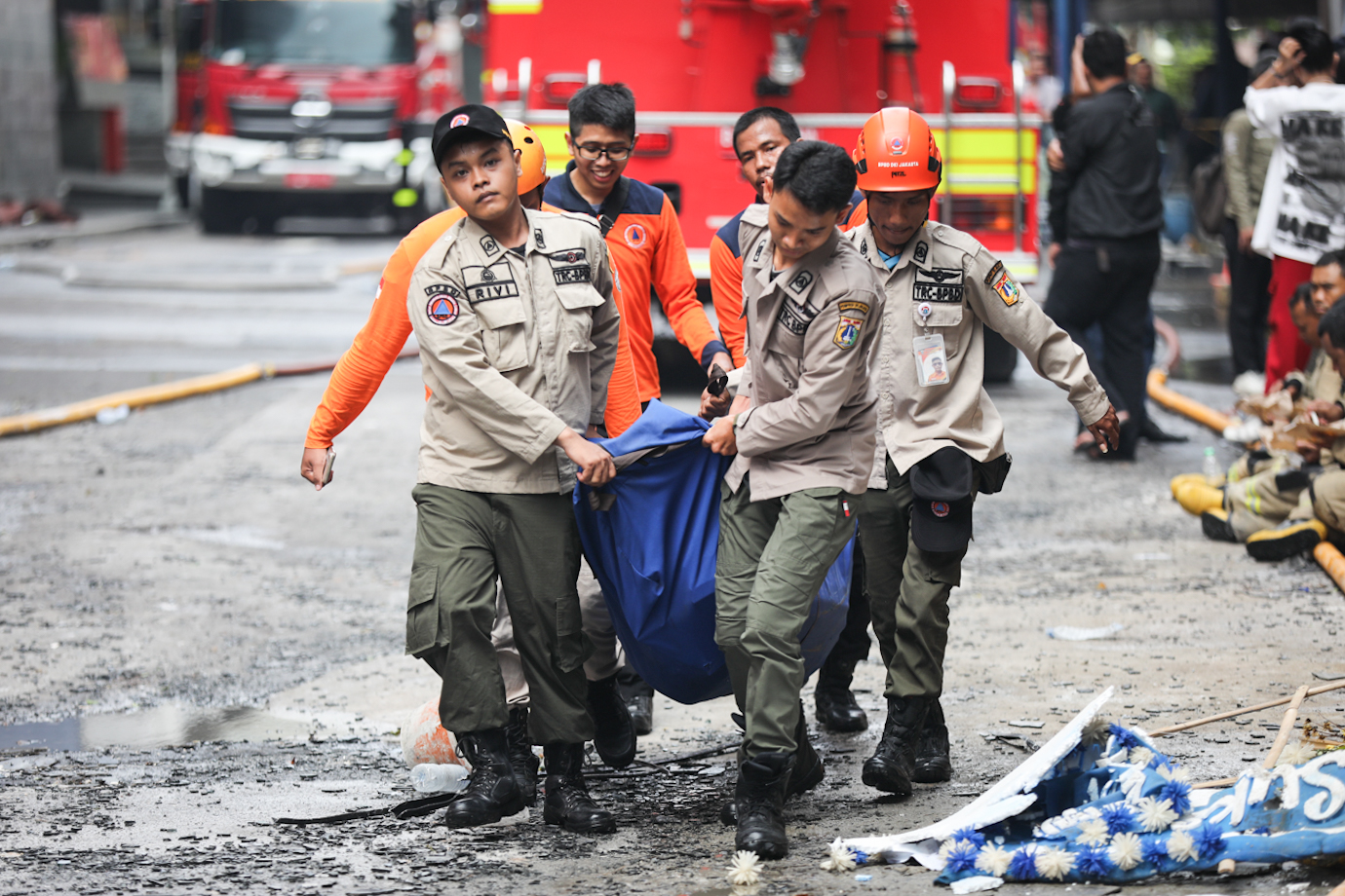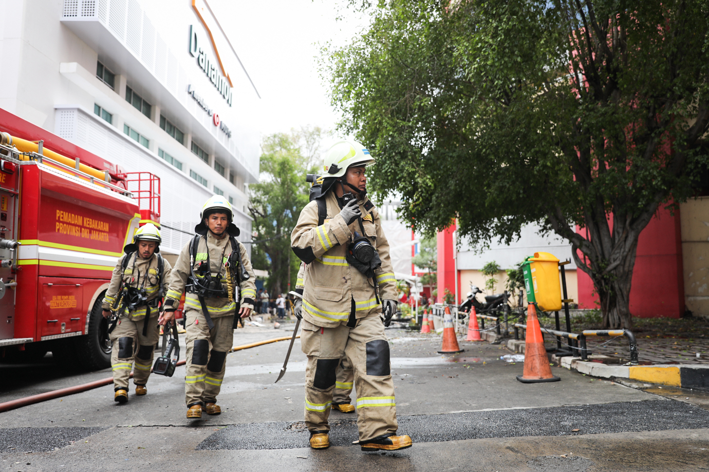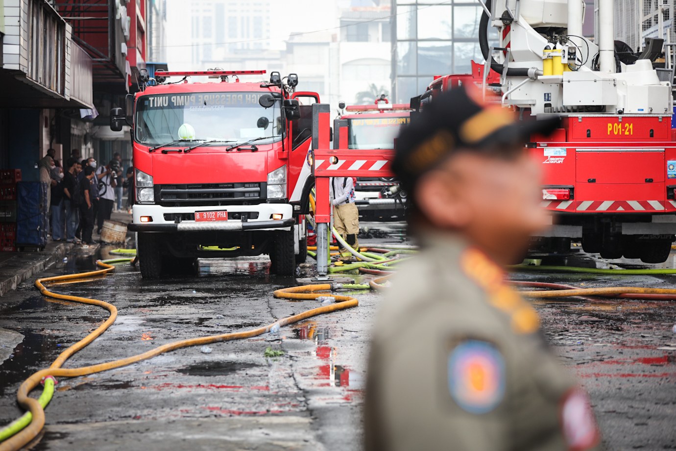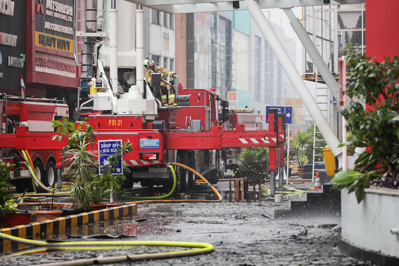 Petugas Gulkarmat Lakukan Pendinginan Kebakaran Glodok Plaza