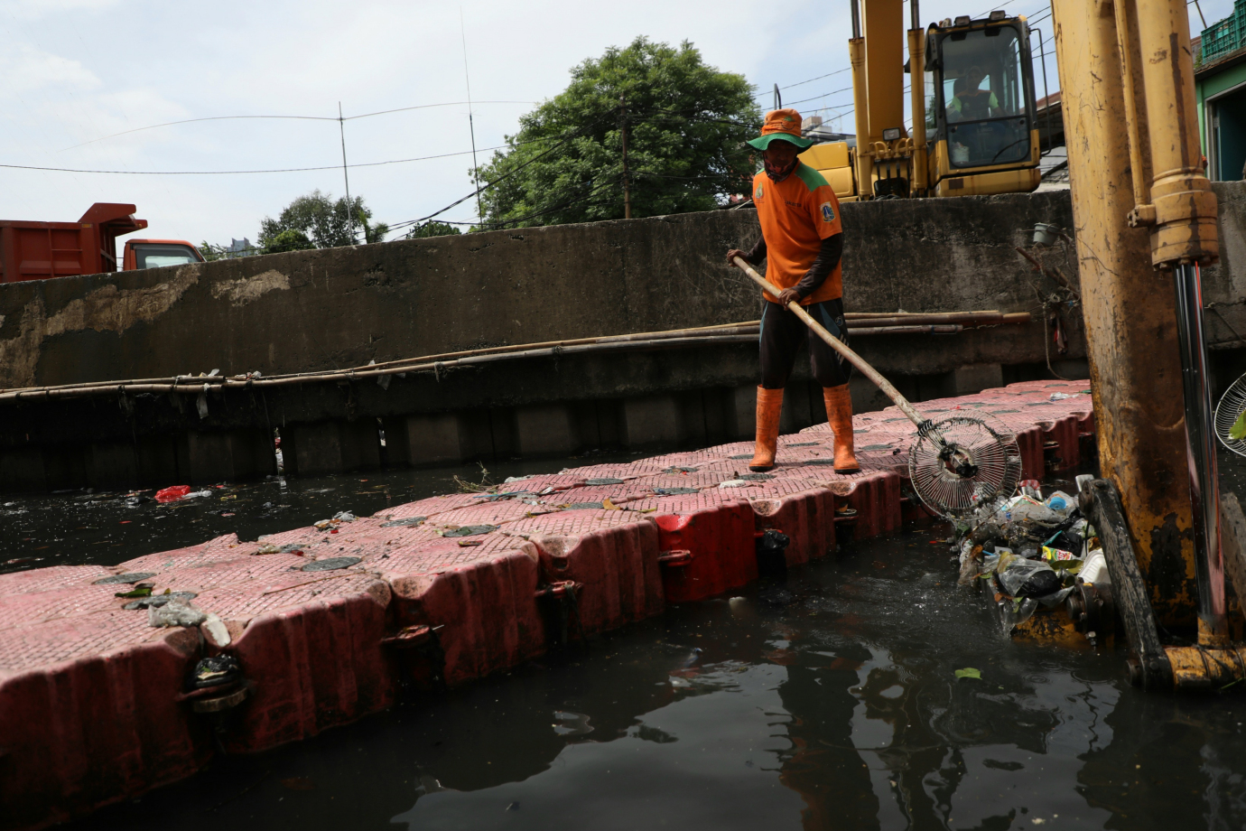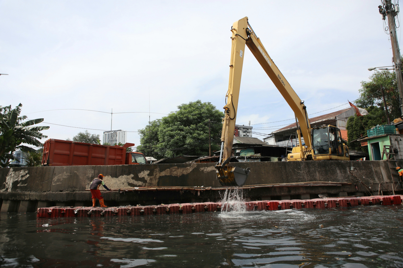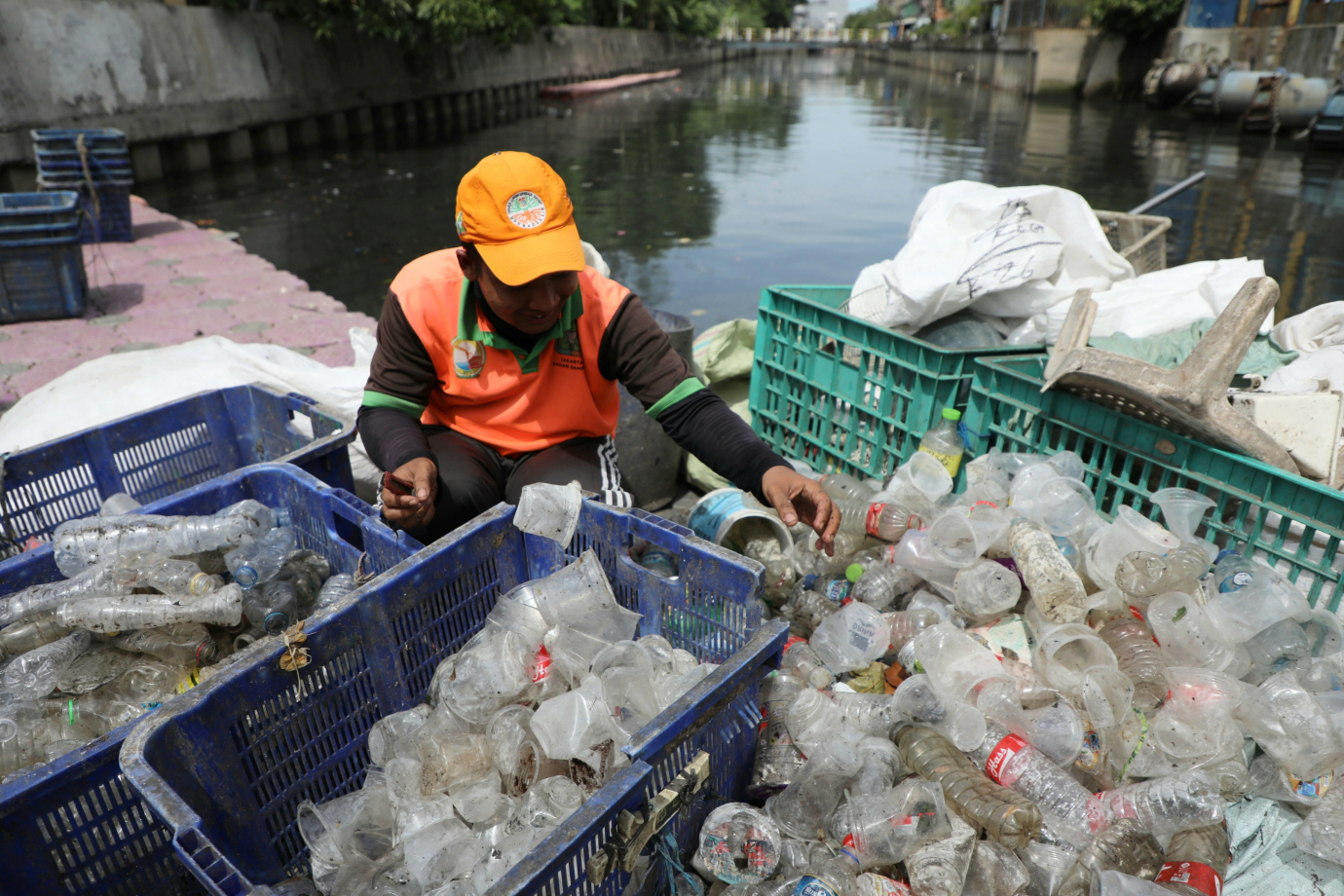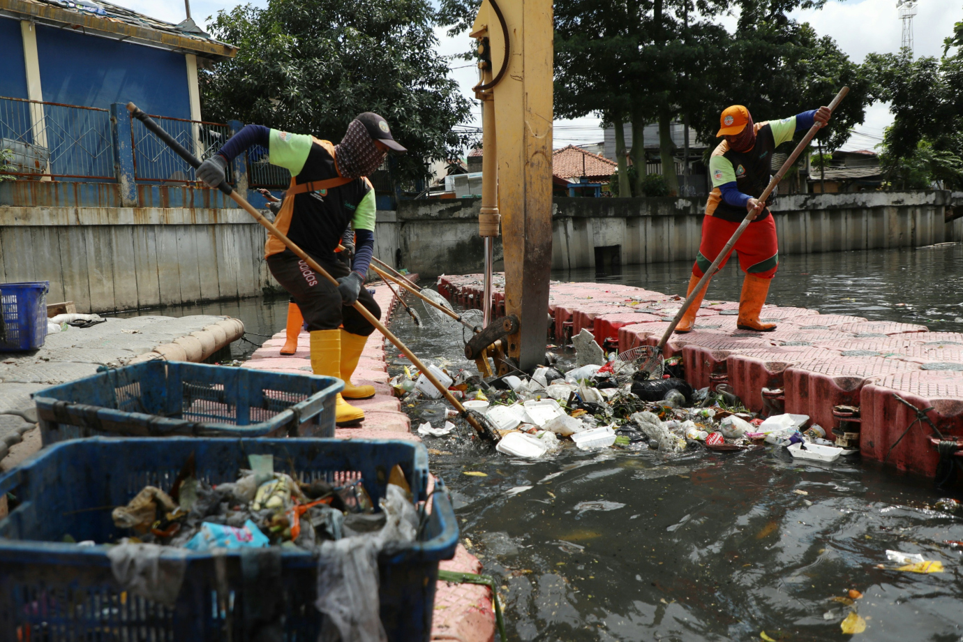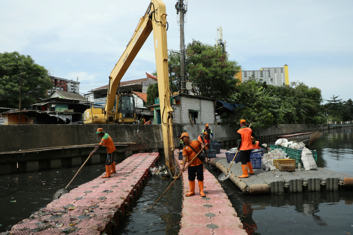 Cegah Penyumbatan Sampah, Petugas Bersihkan Sampah di Kali Sentiong