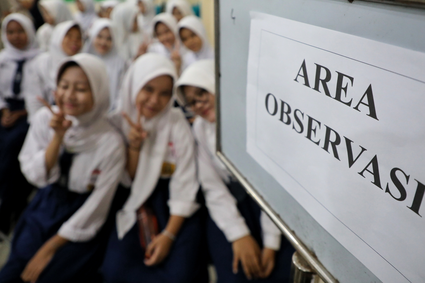 Dinas Kesehatan Provinsi DKI Jakarta melaksanakan pencanangan imunisasi kejar HPV di SMPN 141 Jakarta, Jalan Pondok Jaya, Pela Mampang, Mampang Prapatan, Jakarta Selatan, Senin (20/1). Imunisasi kejar HPV yang dicanangkan pada seluruh siswi SMP atau MTS sederajat ini merupakan salah satu upaya dalam mengeliminasi penyakit kanker serviks di tahun 2030.