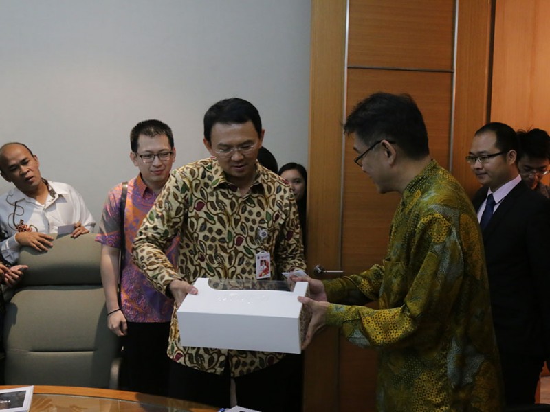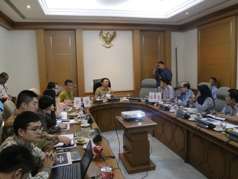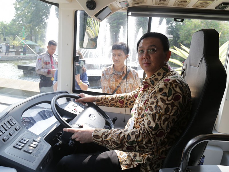 Gubernur DKI Jakarta, Basuki Tjahaja Purnama mendapatkan promosi dan penawaran bus listrik ramah lingkungan di Balai Kota DKI Jakarta, Rabu (16/9/2015). Dalam kesempatan tersebut Basuki menyampaikan untuk penawaran barang harus tetap melalui e-Katalog Lembaga Kebijakan Pengadaan Barang dan Jasa Pemerintah (LKP P). (Foto: Reza/beritajakarta.com)