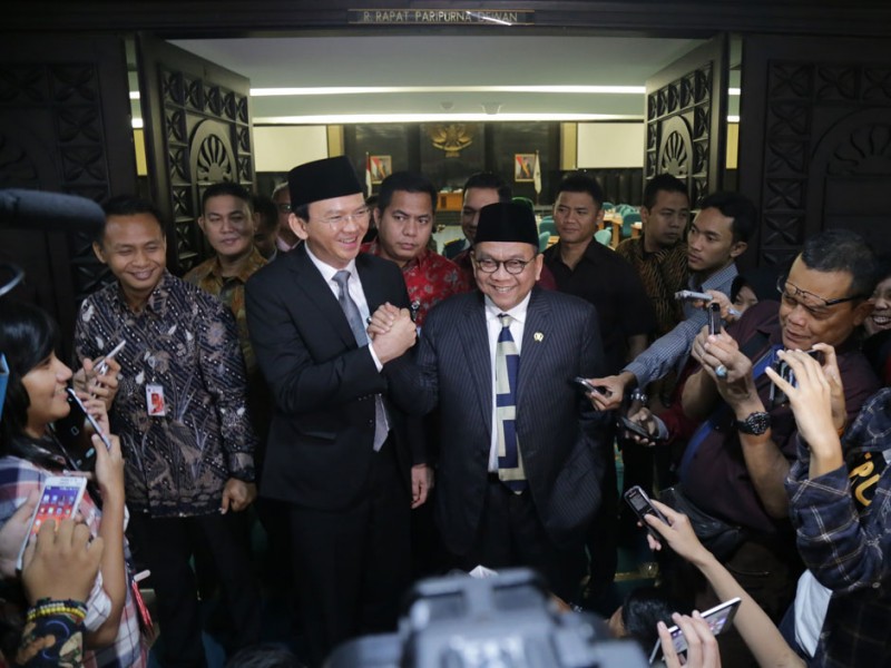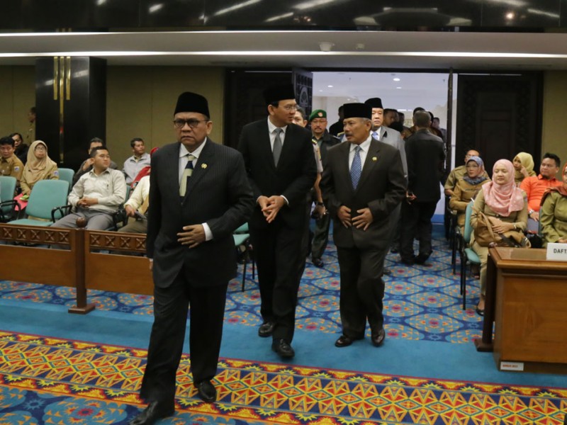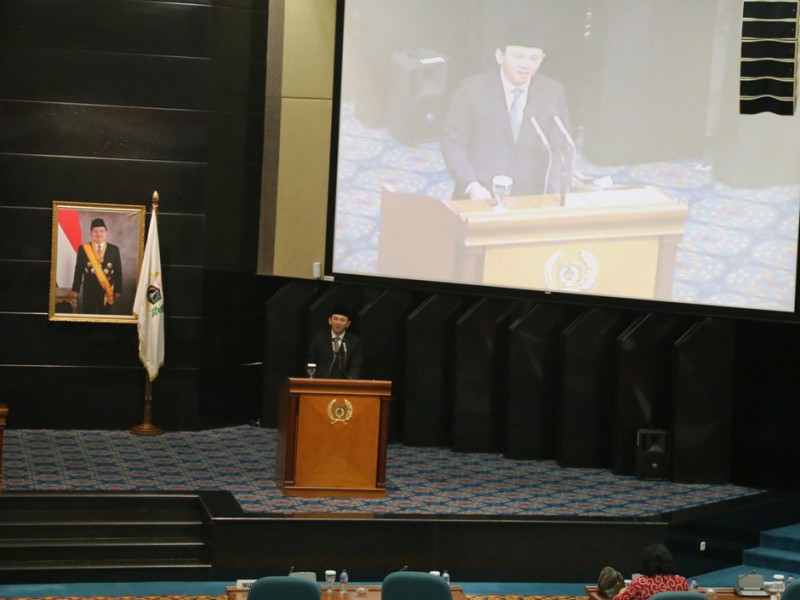 Gubernur DKI Jakarta, Basuki Tjahaja Purnama menyampaikan jawaban atas pemandangan umum fraksi terkait pertanggungjawaban pelaksanaan APBD (P2APBD) Provinsi DKI Jakarta Tahun Anggaran 2014. Jawaban disampaikan dalam Rapat paripurna di Gedung DPRD DKI Jakarta, Jalan Kebon Sirih, Gambir, Jakarta Pusat, Rabu (16/9/2015).(Foto: Reza Hapiz / Beritajakarta.com)