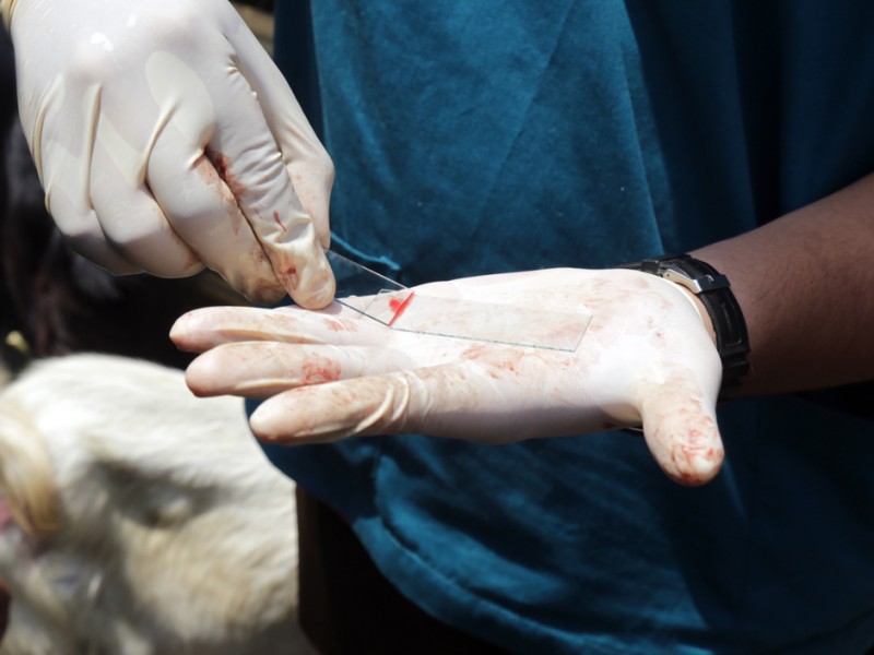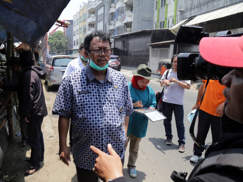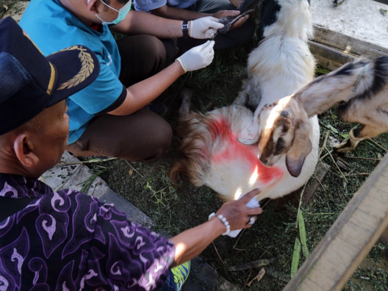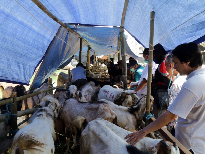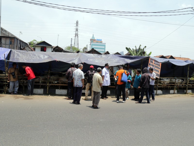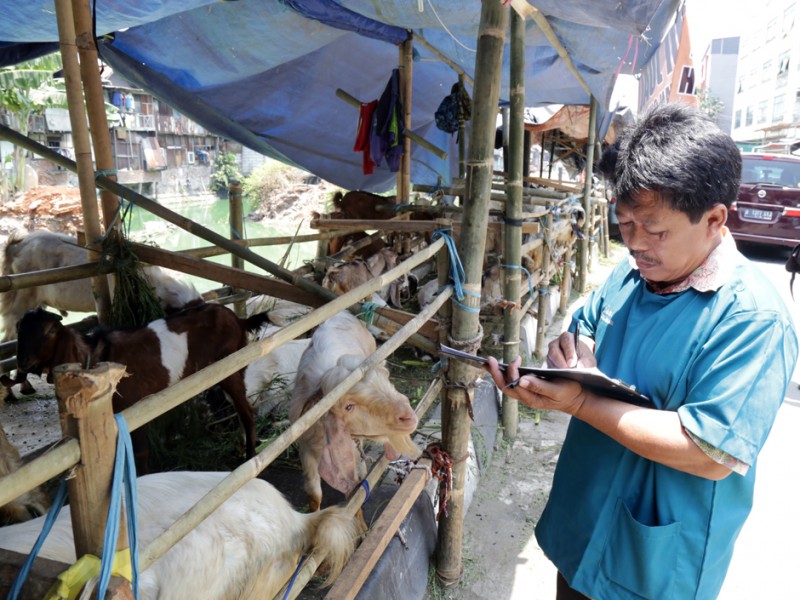 Kepala Suku Dinas Kelautan, Pertanian dan Ketahanan Pangan (Sudin KPKP) Jakarta Pusat, melakukan pengecekan kesehatan hewan kurban di Jalan Tanjung Selor, Kelurahan Cideng, Kecamatan Tanah Abang, Jumat (18/9/2015). Pengecekan dilakukan untuk memastikan hewan kurban yang dijual para pedagang dalam kondisi sehat dan sesuai syariat. (Foto : Reza/Beritajakarta.c om)