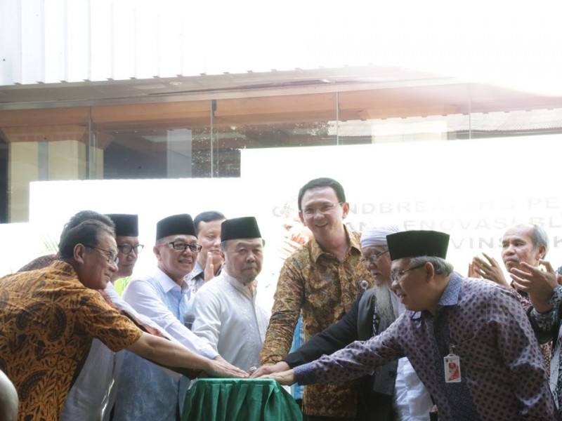 Gubernur DKI Jakarta, Basuki Tjahaja Purnama meresmikan pembangunan Masjid Fatahillah sekaligus renovasi Gedung Blok D Balai Kota DKI Jakarta di Jalan Medan Merdeka Selatan, Gambir, Jakarta Pusat, Jumat (18/9/2015). Setelah sekian lama, baru dimasa kepemimpinan Basuki mampu diwujudkan adanya masjid di Gedung Balai Kota DKI Jakarta. Ditargetkan pembangunan masjid rampung akhir Desember mendatang.(Foto: Yopie / Beritajakarta.com)
