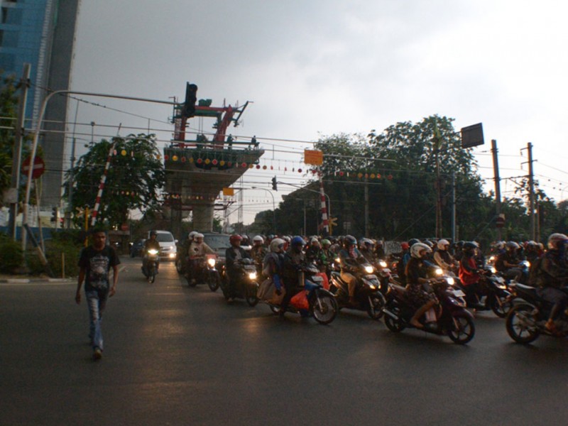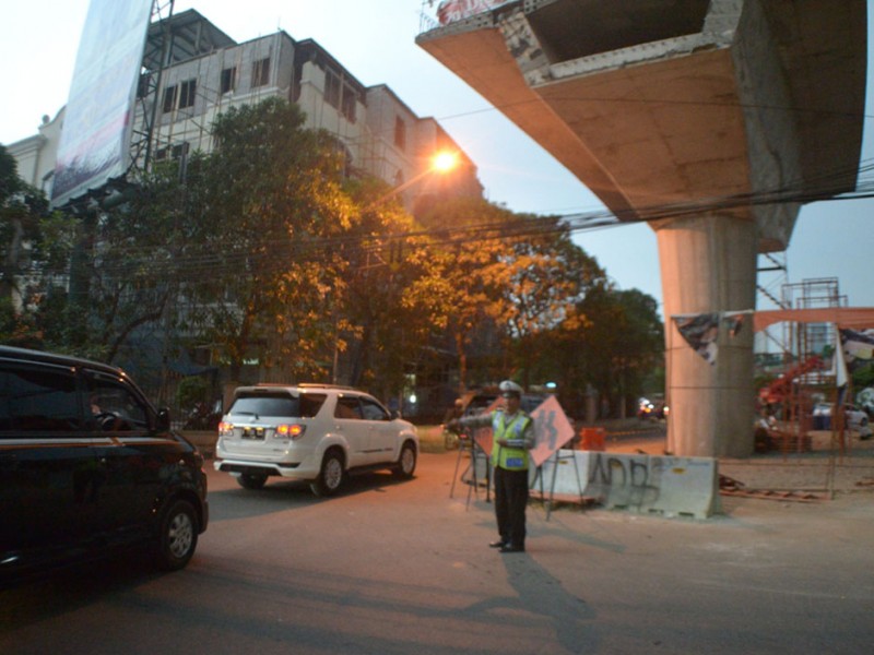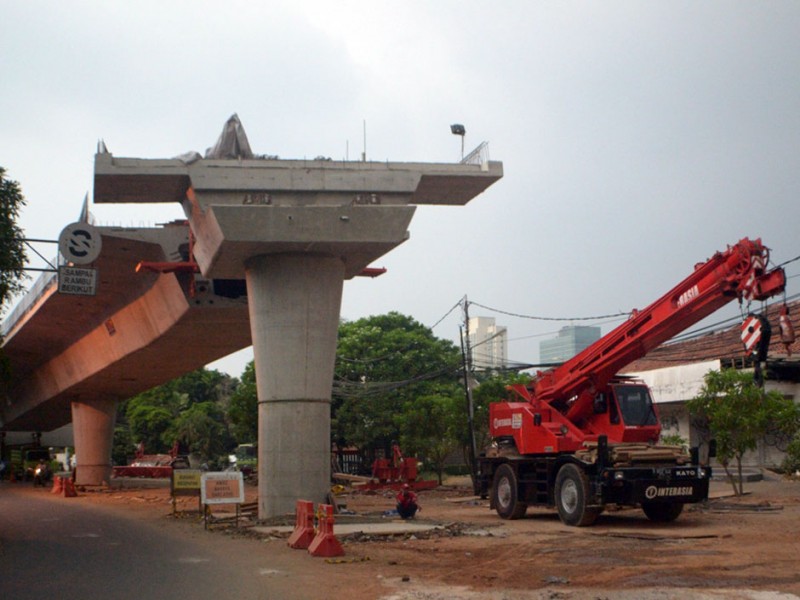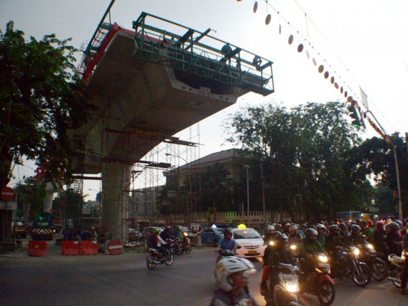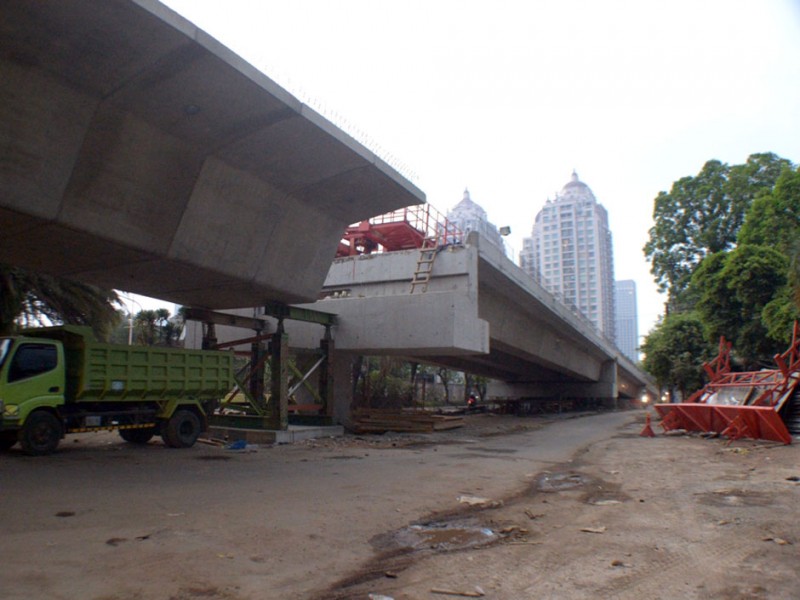 Proyek pembangunan flyover (FO) Permata Hijau di Jalan Tentara Pelajar, Kebayoran Lama, Jakarta Selatan, sudah mencapai 60 persen. Pembangunan FO yang ditargetkan rampung November mendatang ini, diharapkan bisa mengurai kemacetan dan mencegah terjadinya kecelakaan akibat adanya perlintasan sebidang.(Foto: Yopie / Beritajakarta.com)