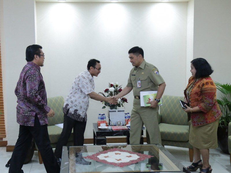 Jajaran Mizan Publika menemui Kepala Badan Kesatuan Bangsa dan Politik (Kesbangpol) DKI Jakarta, Ratiyono di Balai Kota DKI Jakarta, Rabu (23/9/2015). Ratiyono, mewakil Wakil Gubernur DKI Jakarta, Djarot Saiful Hidayat yang berhalangan hadir dalam pertemuan ini. Dalam kesempatan tersebut pihak Mizan Publika menyampaikan keinginan kerjasama untuk pembuatan buka Membumikan Pancasila. (Foto: Reza/beritajakarta.com)