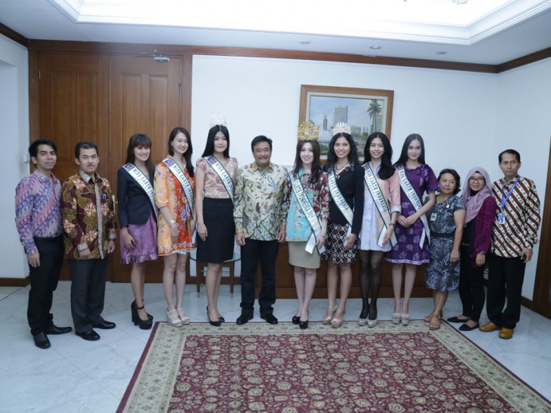 Finalis Miss Earth Tahun 2015 didampingi pengurus El John Pageants menemui Wakil Gubernur DKI Jakarta, Djarot Saiful Hidayat di Balai Kota DKI Jakarta, Jumat (25/9/2015). Dalam kesempatan tersebut jajaran El John Pageants menyampaikan perihal penyelenggraan Miss Earth Tahun 2015 serta dukungan kepada Pemprov DKI Jakarta berkenaan dengan isu lingkungan.(Foto: Reza / Beritajakarta.com)