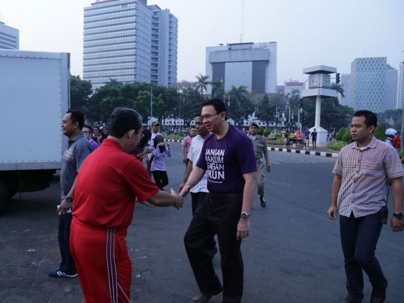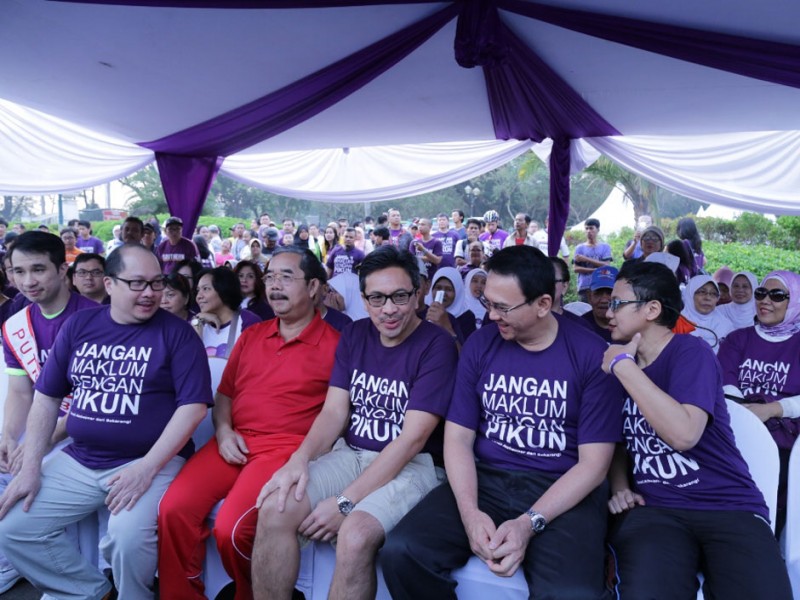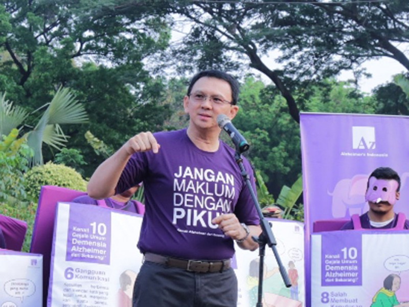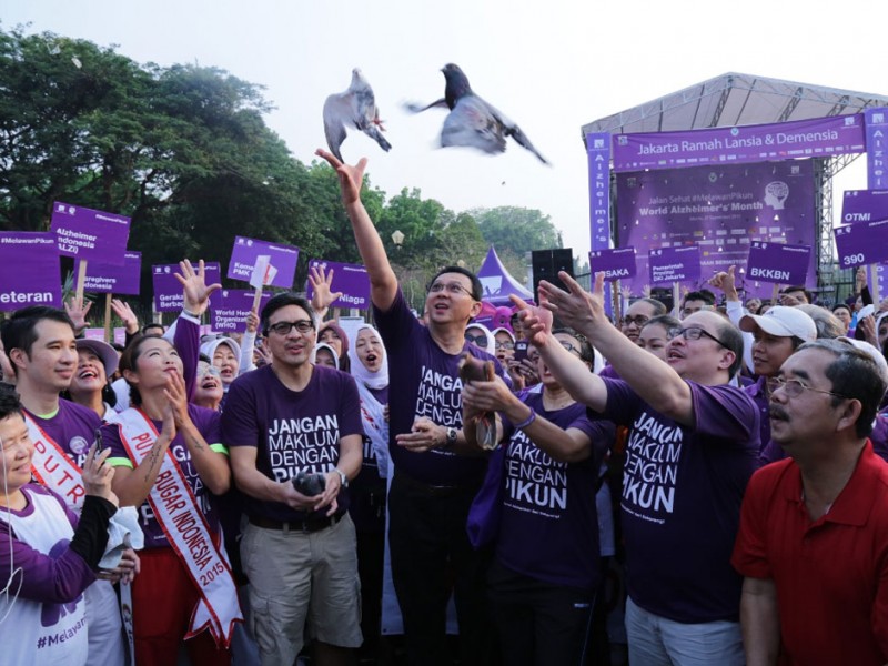 Gubernur DKI Jakarta, Basuki Tjahaja Purnama menghadiri dan membuka acara Jalan Sehat Melawan Pikun dalam rangka World Alzheimer`s Month di Pintu Barat Daya Monas, Jakarta Pusat, Minggu (27/09/2015). (Foto: Reza/beritajakarta.com)