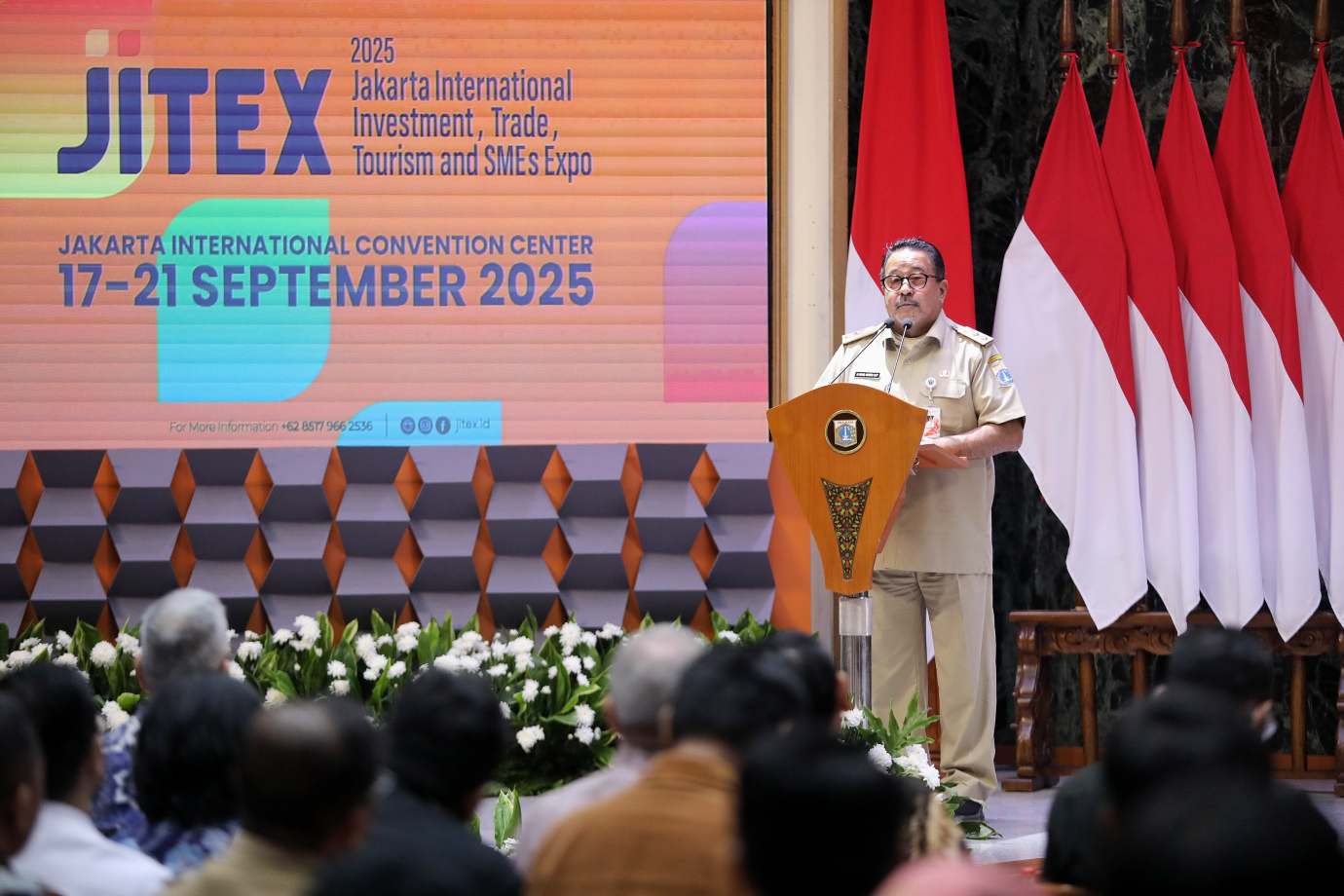 Pemerintah Provinsi DKI Jakarta menggelar soft launching Jakarta International Investment, Trade, Tourism & SMEs Expo (JITEX) 2025 di Balai Agung, Balai Kota DKI Jakarta, Selasa (12/8). Kegiatan yang diselenggarakan melalui kemitraan strategis antara Pemprov DKI Jakarta, Asian Trade, Tourism and Economics Council (ATTEC), serta Himpunan Peritel dan Penyewa Pusat Perbelanjaan Indonesia (HIPPINDO) ini direncanakan berlangsung mulai 17–21 September 2025 mendatang di Jakarta International Convention Center (JCC).