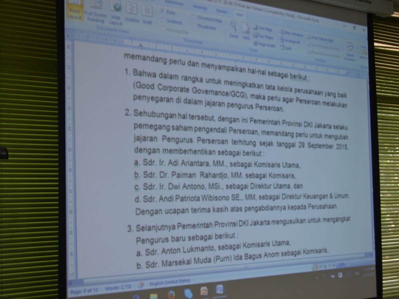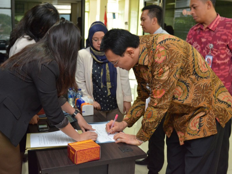 Gubernur DKI Jakarta, Basuki Tjahaja Purnama menghadiri Rapat Umum Pemegang Saham Luar Biasa (RUPS-LB) PT Food Station Tjipinang Jaya, di Jalan Pisangan Lama, Jakarta Timur, Selasa (29/9/2015). Dalam kesempatan tersebut Basuki berharap pengurus baru bisa bekerja lebih baik. Pasalnya, Pemprov DKI Jakarta berencana menambah modal PT Food Station Tjipinang Jaya sebesar Rp 1,5 triliun.(Foto: Yopie / Beritajakarta.com)
