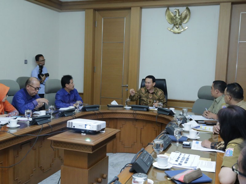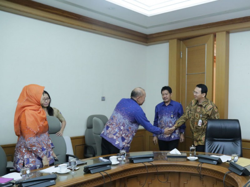 Jajaran Direksi PT Bank BRI menemui Gubernur DKI Jakarta, Basuki Tjahaja Purnama, di Balai Kota DKI Jakarta, Selasa (29/9/2015). Dalam kesempatan tersebut jajaran Direksi PT Bank BRI menyampiakan usulan kerjasama bantuan pasca bencana melalui Kartu e-Natura.(Foto: Reza / Beritajakarta.com)