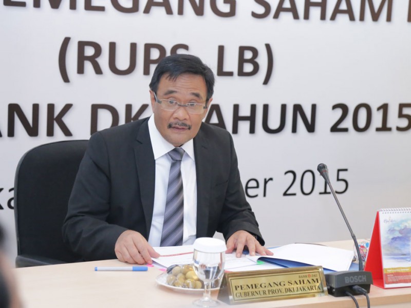 Wakil Gubernur DKI Jakarta, Djarot Saiful Hidayat mengikuti Rapat Umum Pemegang Saham Luar Biasa (RUPS-LB) PT. Bank DKI di Kantor Pusat Bank DKI Jalan Ir.H. Juanda, Jakarta pusat, Kamis (1/10/2015). Rapat dihadiri jajaran Komisaris dan Direksi PT Bank DKI dan berlangsung tertutup.(Foto: Reza / Beritajakarta.com)