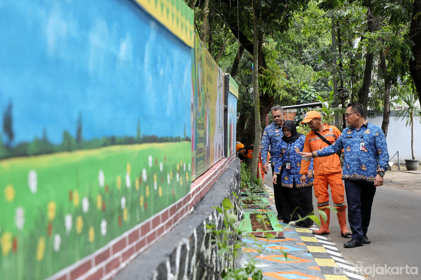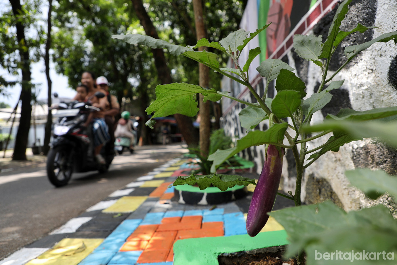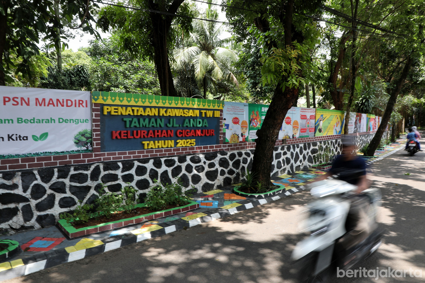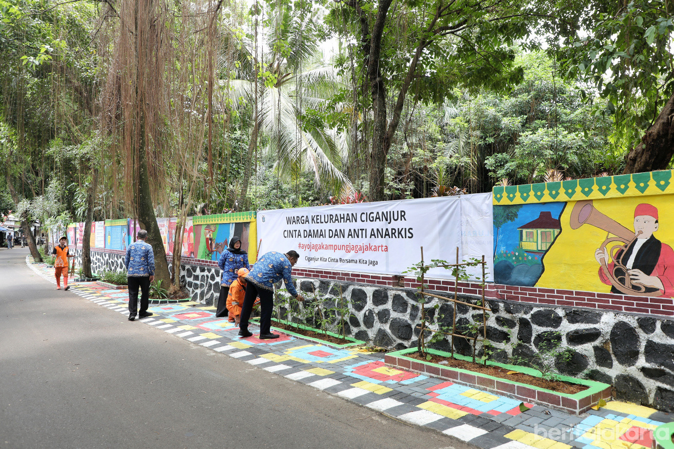Kelurahan Ciganjur, Kecamatan Jagakarsa, Jakarta Selatan, melaksanakan penataan Kawasan Unggulan Triwulan III di Jalan Anda, RT 07/03, Rabu (1/10). Penataan di lahan seluas 110 meter persegi tersebut diwujudkan melalui pembuatan mural bertema budaya Betawi dan ketahanan pangan lingkungan serta beberapa spanduk yang bertemakan sosialisasi untuk masyarakat.