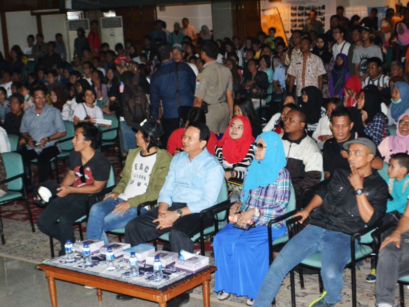 Wisata Balai Kota DKI Jakarta kian menarik. Pasalnya, sejumlah film layar lebar yang mengandung pesan moril melengkapi hiburan bagi anda dan keluarga yang datang berkunjung. Hal ini sebagaimana, Minggu (4/10/2015), film berjudul Slank Nggak Ada Matinya diputar di Cinema Balai Kota. Bahkan, Gubernur DKI Jakarta, Basuki Tjahaja Purnama bersama sejumlah musisi Gang Potlot dan para pemain film hadir langsung nonton bareng (Nobar) film ini bersama warga. (Foto : Yopie/Beritajakarta.com)