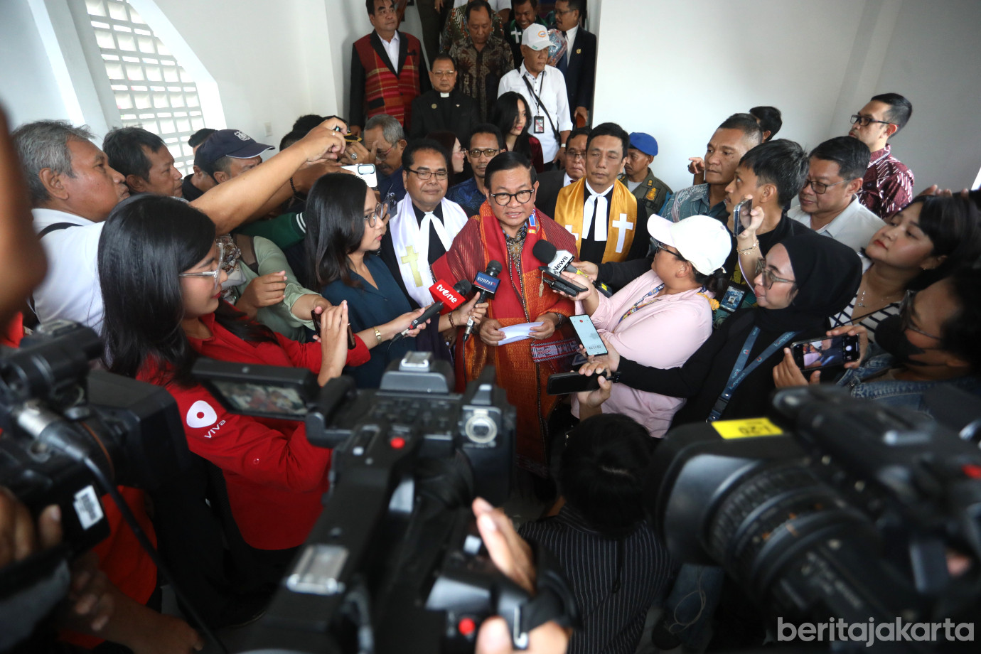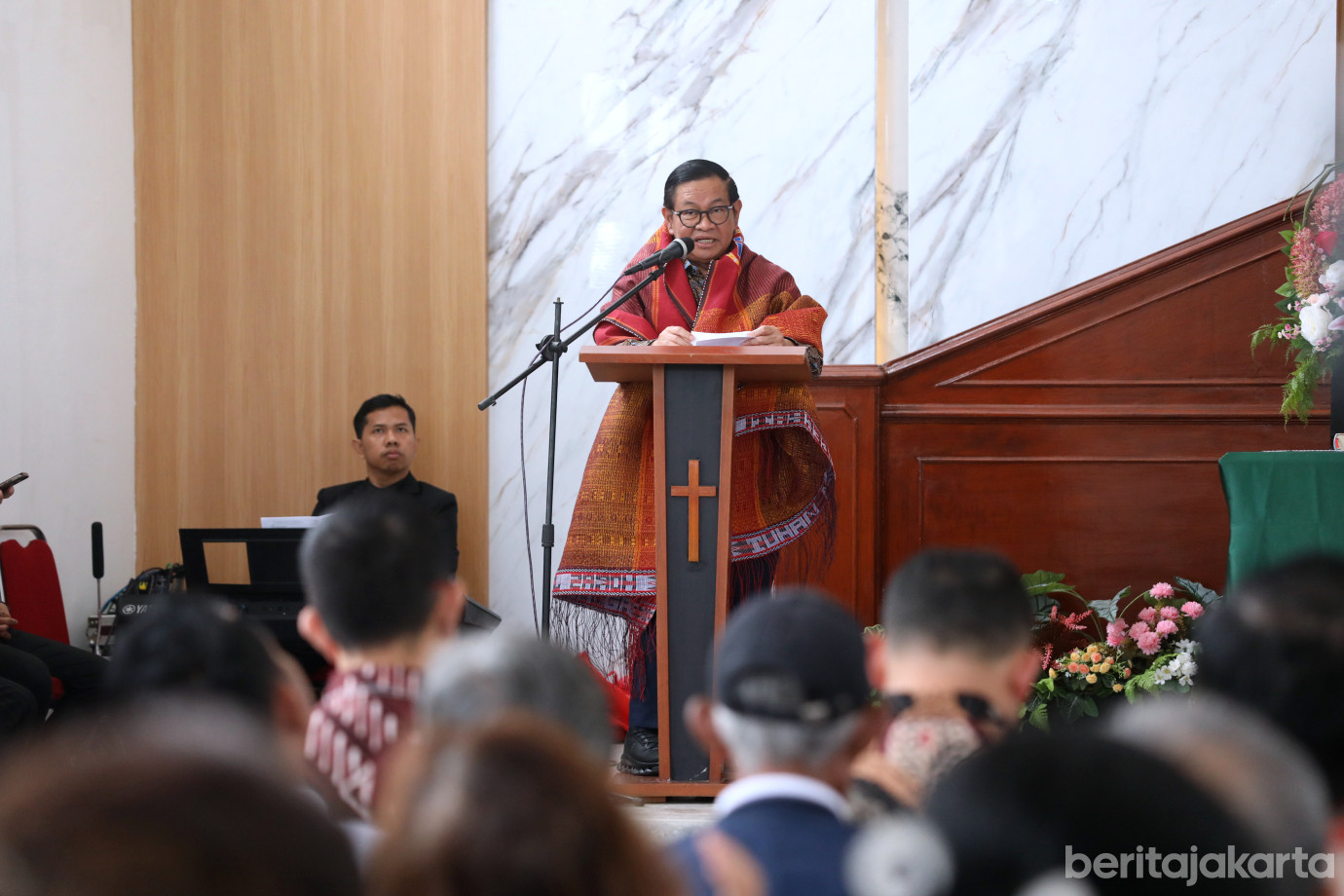 Gubernur DKI Jakarta, Pramono Anung meresmikan Gereja Huria Kristen Indonesia (HKI) Tanjung Priok di Jalan Tugu Indah, Semper Barat, Cilincing, Jakarta Utara, Minggu (16/11). Dalam acara tersebut, Pramono mengapresiasi jemaat dan para donatur yang telah bergotong royong membangun gereja secara swadaya.
