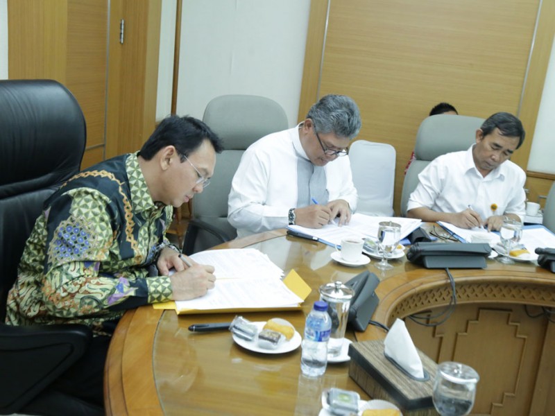 Gubernur DKI Jakarta, Basuki Tjahaja Purnama memimpin rapat Badan Koordinasi Penataan Ruang Daerah (BKPRD) Provinsi DKI Jakarta, di Balai Kota DKI Jakarta, Kamis (8/10/2015). Rapat dilakukan untuk memastikan program pembangunan di Jakarta tidak menyalahi aturan tata ruang dan memenuhi kaedah kelestarian lingkungan. (Foto: Reza / Beritajakarta.com)