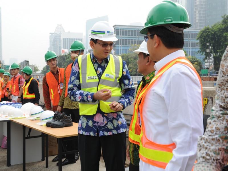Gubernur DKI Jakarta, Basuki Tjahaja Purnama kembali melakukan blusukan bersama Presiden Republik Indonesia, Joko Widodo (Jokowi). Kali ini, Kamis (8/10/2015), keduanya meninjau pengeboran proyek Mass Rapid Transit (MRT) menggunakan Tunnel Boring Machine (TBM) di Patung Pemuda, Senayan, Jakarta Selatan. (Foto: Yopie/beritajakarta.com)