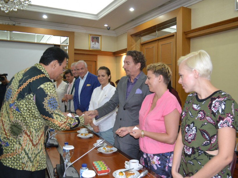 Duta Besar (Dubes) Republik Indonesia untuk Polandia, Peter Gontha bersama para tour operator dari Polandia, Finlandia dan Estonia menemui Gubernur DKI Jakarta, Basuki Tjahaja Purnama, di Balai Kota DKI Jakarta, Kamis (8/10/2015). Selain berwisata, para tour operator ini menyampaikan masukan perihal pariwisata di DKI Jakarta, khususnya Kepulauan Seribu.(Foto: Yopie / Beritajakarta.com)