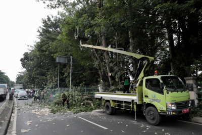 Satpel Tamhut Ciracas Toping Pohon di Jalan Raya Bogor